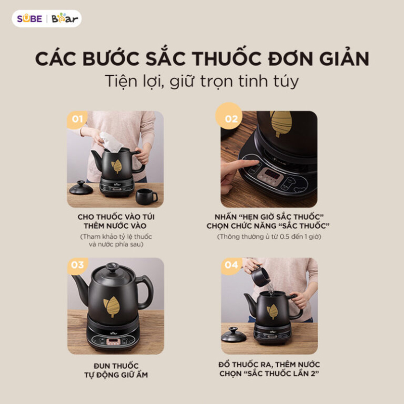 Không cần đun lửa theo cách truyền thống, bạn vẫn có thể sắc thuốc an toàn thu được nhiều dưỡng chất nhất mà lại không tốn thời gian và công sức. Giờ đây hãy để các sản phẩm thông minh phục vụ cuộc sống của bạn tốt hơn và Bear sẽ đồng hành cùng bạn nhé!