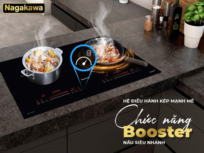 Bếp điện từ đôi Nagakawa NDI9191 với chức năng Booster giúp bạn lựa chọn mức công suất cao nhất khi muốn nấu các món đặc trưng cần gia nhiệt nhanh, giúp lưu giữ đúng hương vị món ăn mong muốn.