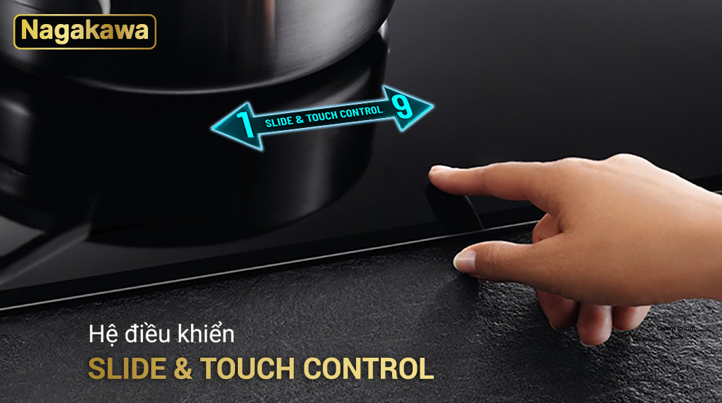 Với bếp đôi điện từ Nagakawa NK2C05MB, bạn có thể lựa chọn cách điều chỉnh tăng giảm công suất bằng cách có thể vuốt di chuyển trái, phải hoặc trực tiếp ấn phím điều chỉnh 9 mức công suất.