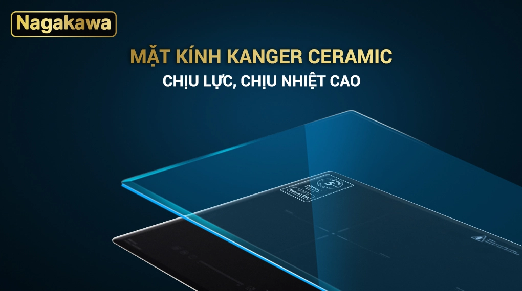 Mặt kính bếp đôi điện từ Nagakawa NK2C05MB sử dụng chất liệu gốm kính Kanger cao cấp, sang trọng, mang lại vẻ hài hòa, tinh tế cho căn bếp của bạn. Kính Kanger có khả năng chịu sốc nhiệt đến 700 độ C, chịu lực, chịu nhiệt cao và dễ dàng vệ sinh sau khi đun nấu. Mặt kính được bo viền nhôm giúp tăng tính thẩm mỹ cho bếp và bếp hạn chế được trầy xước trong quá trình sử dụng.