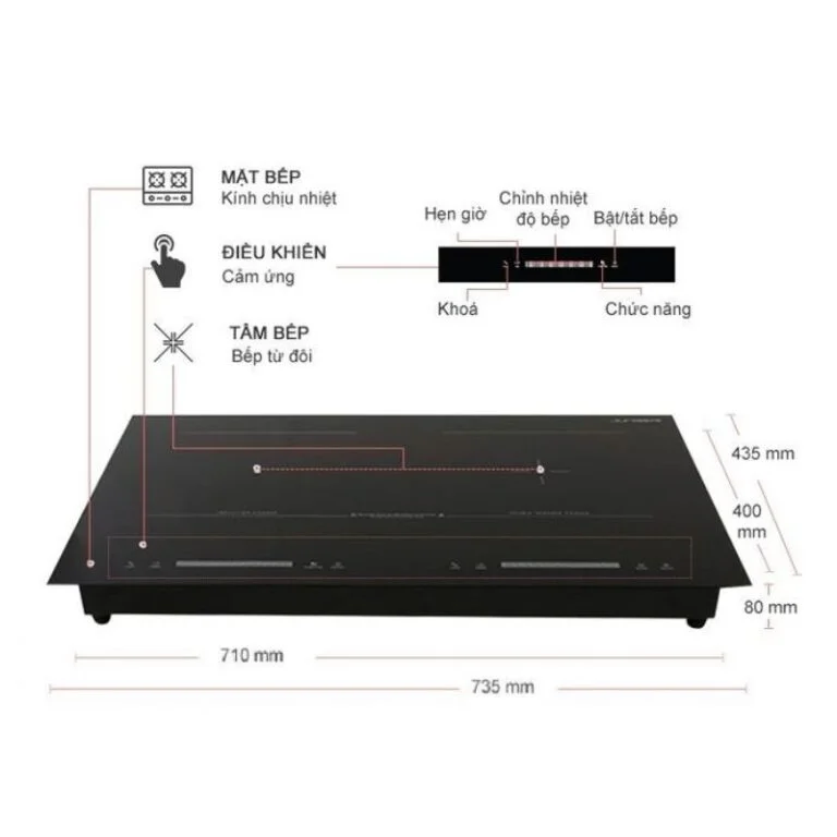 • Kích thước lắp đặt âm: 710 x 410 mm (rộng x dài)