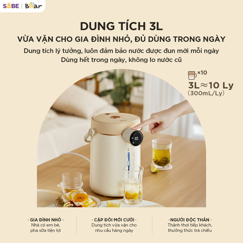 | Tên sản phẩm | Bình thuỷ điện Bear 3L EWB-5H30C60 |