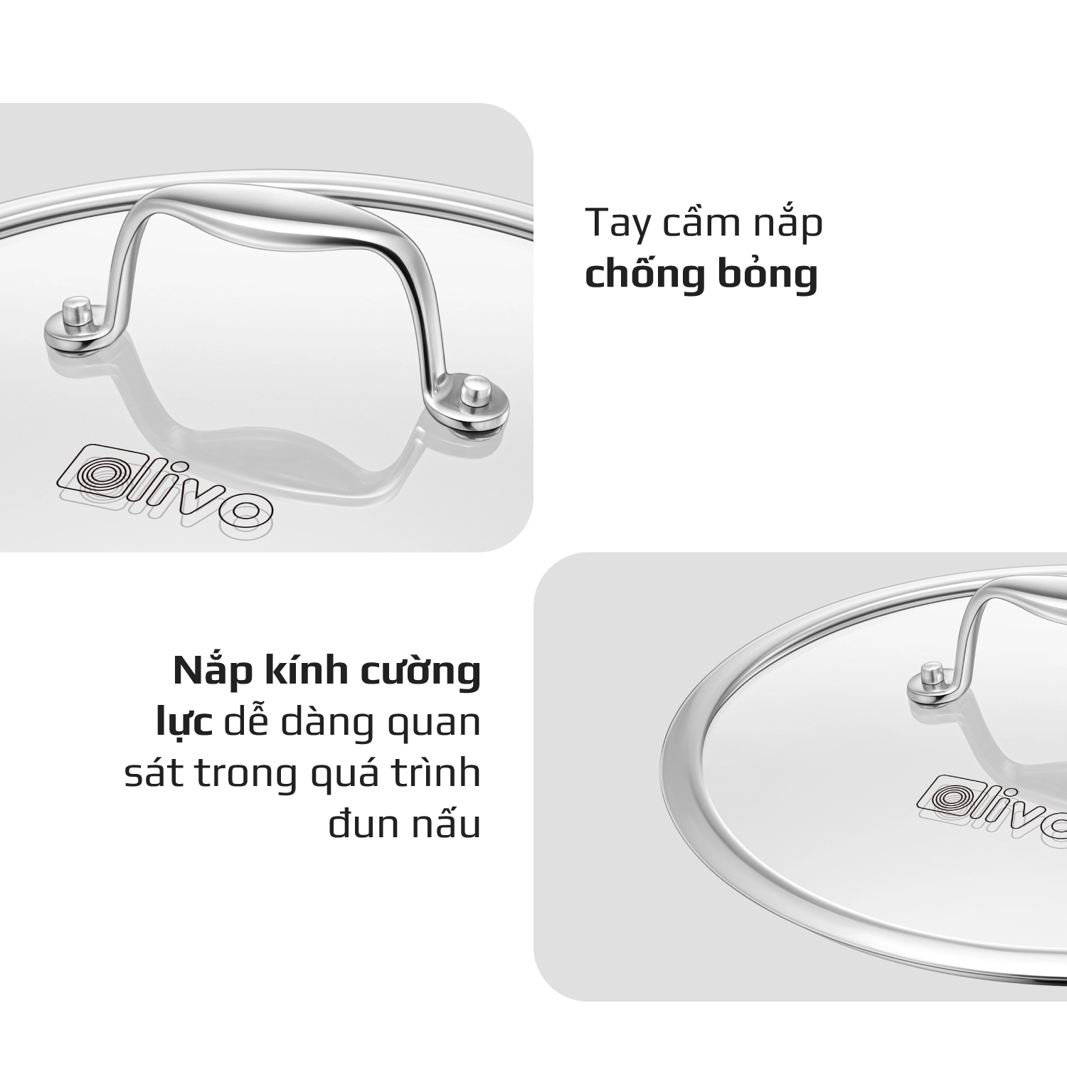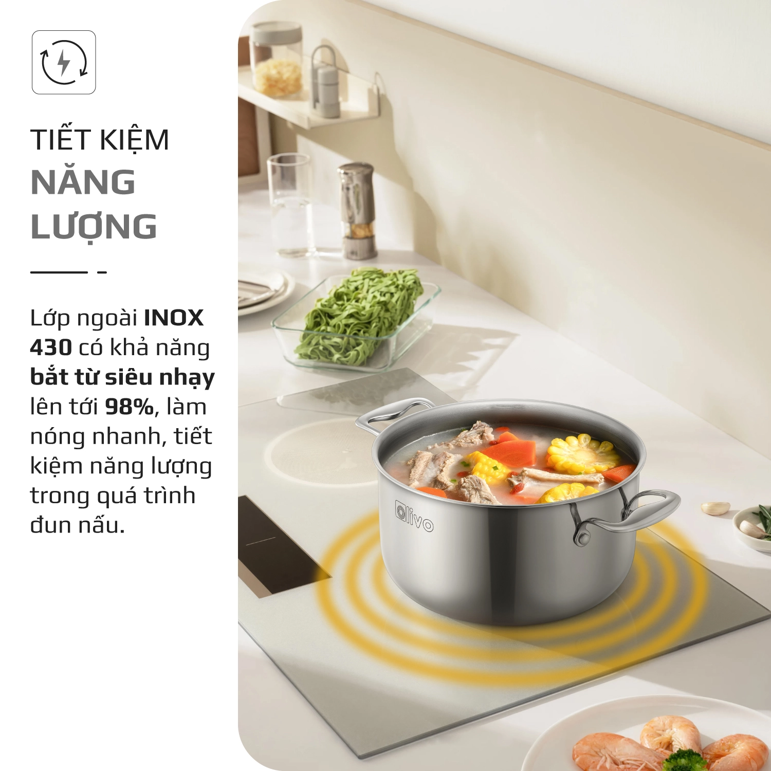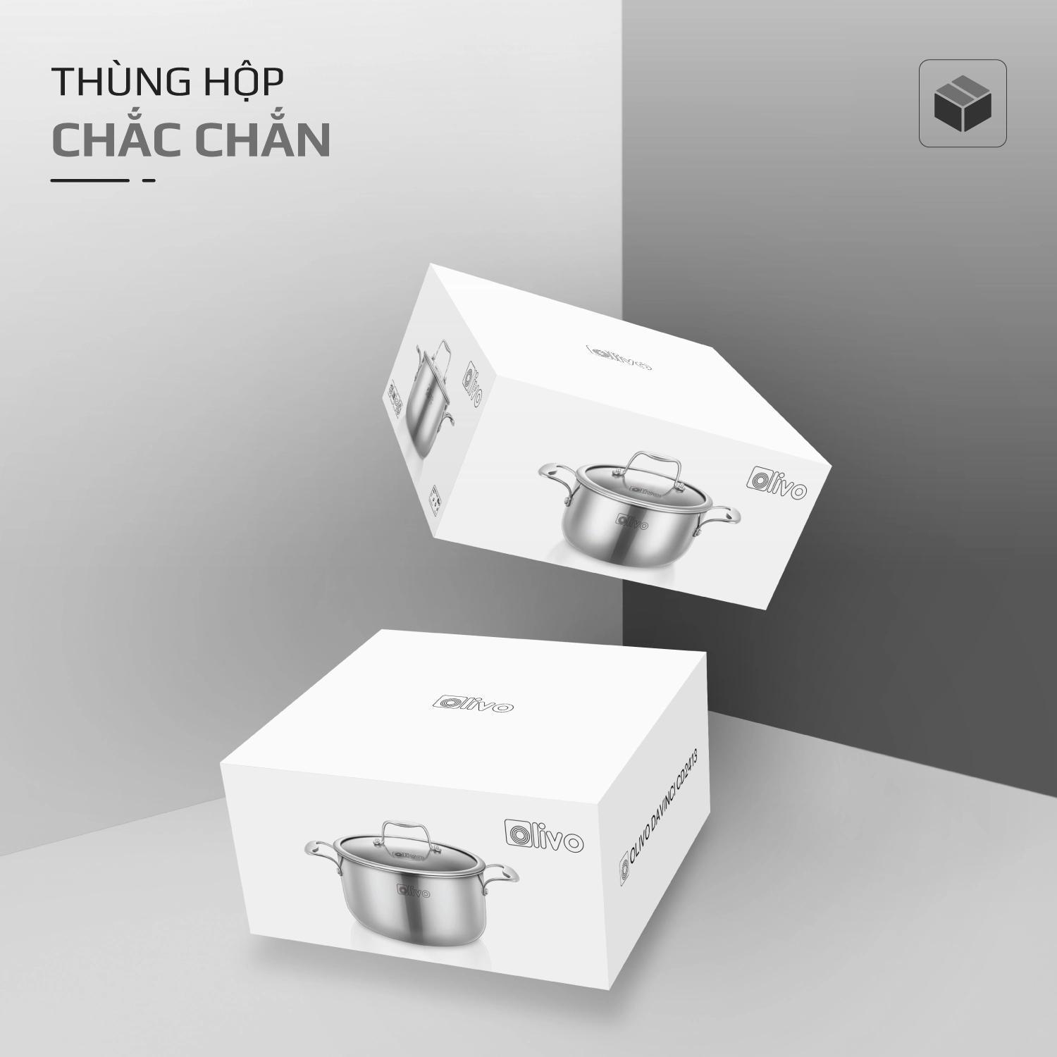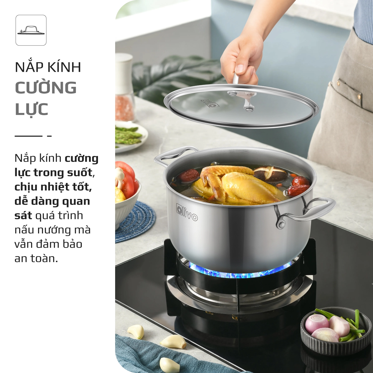 - Không phủ chống dính hóa học, không chứa chất độc hại, Bộ nồi Inox OLIVO Davinci mang đến sự an tâm tuyệt đối cho sức khỏe gia đình bạn.
