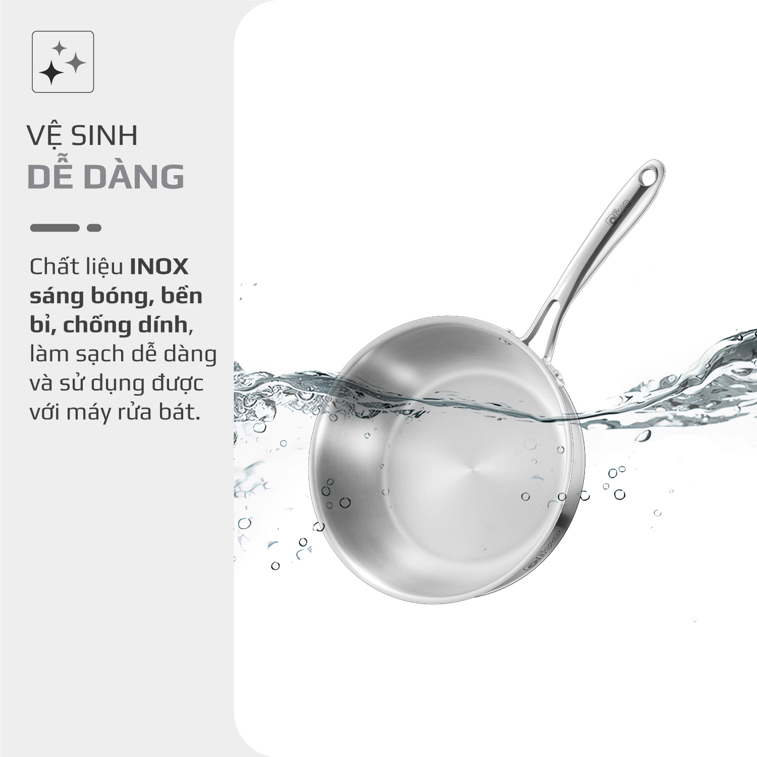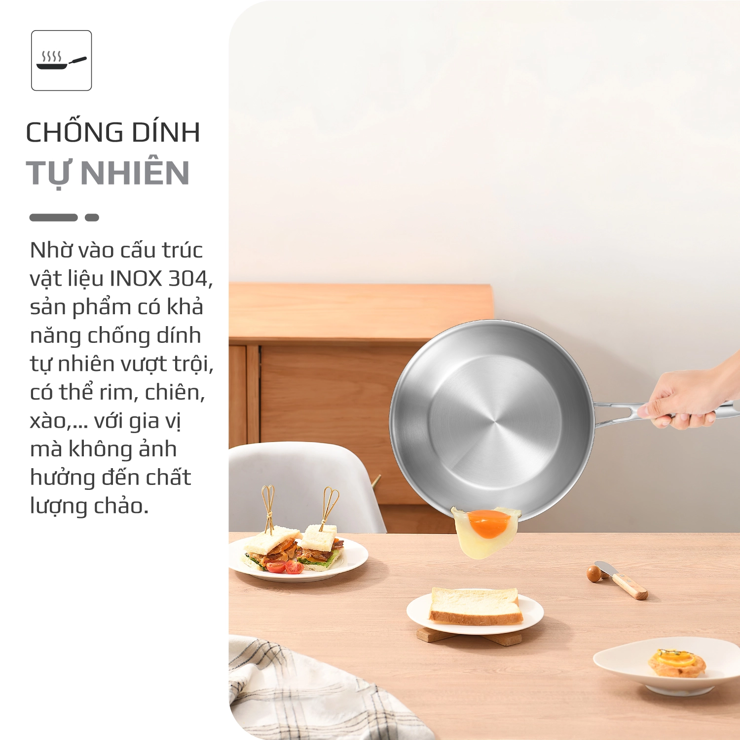 Lớp INOX 304 trong cùng có nhiệm vụ chống dính tự nhiên vượt trội, đảm bảo nấu ăn không bị dính, cháy khét.