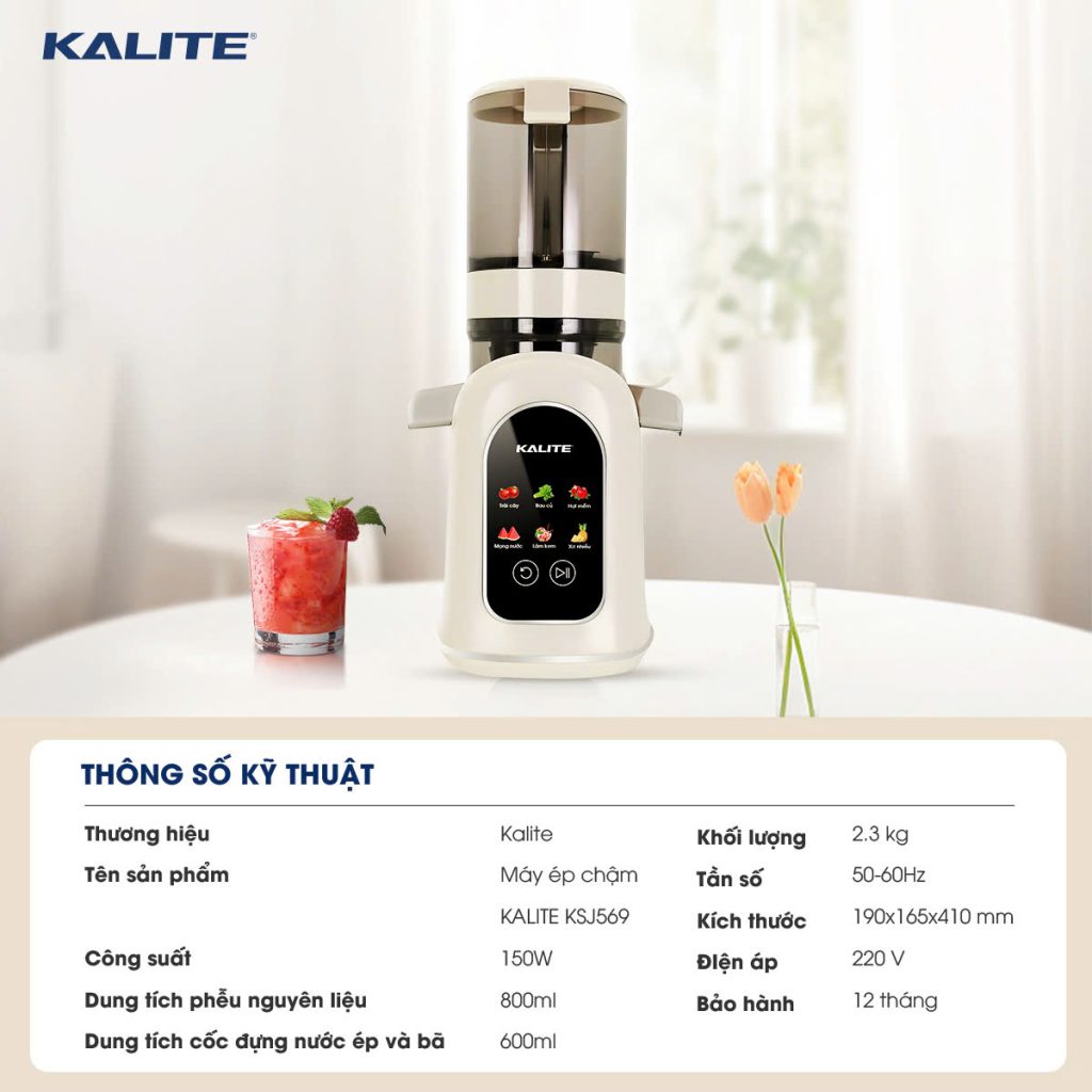Máy ép chậm Kalite KSJ569 giúp bạn thưởng thức những ly nước ép thanh mát, bổ dưỡng, cho bạn cảm giác như đang thưởng thức tinh túy từ thiên nhiên. Bên cạnh đó KSJ569 còn là điểm nhấn tinh tế cho căn bếp hiện đại. Thiết kế sang trọng, chất liệu cao cấp, đường nét thanh lịch giúp tôn lên đẳng cấp không gian bếp.