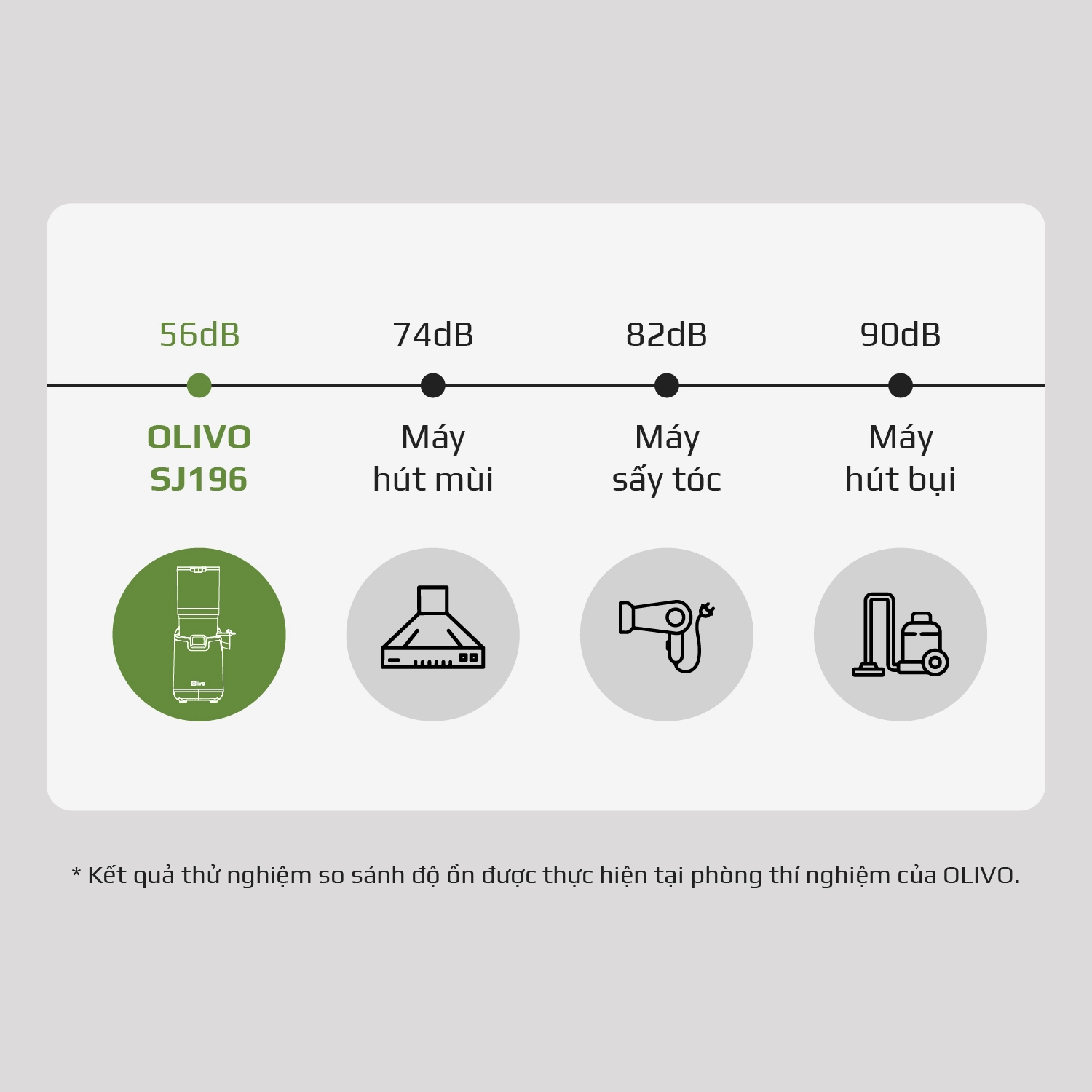 • Tại phòng thí nghiệm của OLIVO chúng tôi kiểm nghiệm và cho ra kết quả độ ồn của OLIVO SJ196 chỉ 56dB, hoạt động vô cùng êm ái đem lại trải nghiệm hoàn toàn khác biệt cho người dùng.