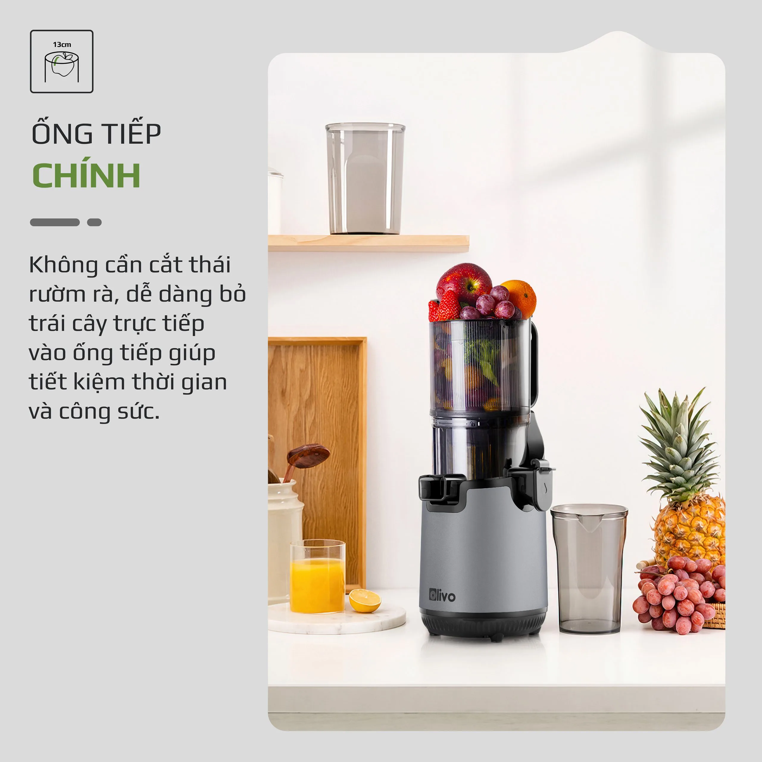 • Sơ chế cắt nhỏ rau củ quả mỗi lần muốn ép trái cây có lẽ là công việc mà chị em ngại nhất đúng không ạ. Đôi khi chỉ vì chi tiết này mà chị em lại không duy trì được việc uống nước ép mỗi ngày. Đừng lo lắng vì phiên bản máy ép chậm mới OLIVO SJ196 đem lại sự tiện lợi hơn bao giờ hết, không cần cắt, thái rườm rà tiết kiệm thời gian và công sức. Tất cả nguyên liệu được hòa trộn trong khoang tiếp lớn lên tới 13cm thoải mái ép trái cây nguyên quả và dễ dàng bỏ nguyên liệu vào máy.