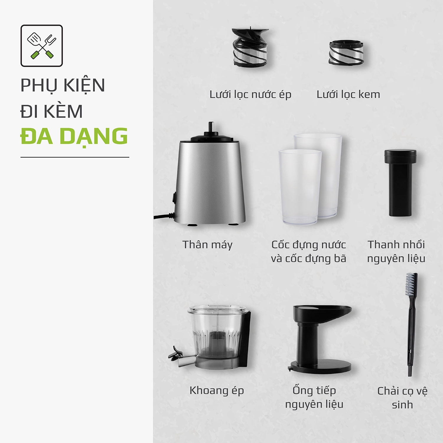 MÁY ÉP CHẬM ĐA NĂNG 3 TRONG 1: LÀM NƯỚC ÉP, LÀM KEM, LÀM SỮA HẠT