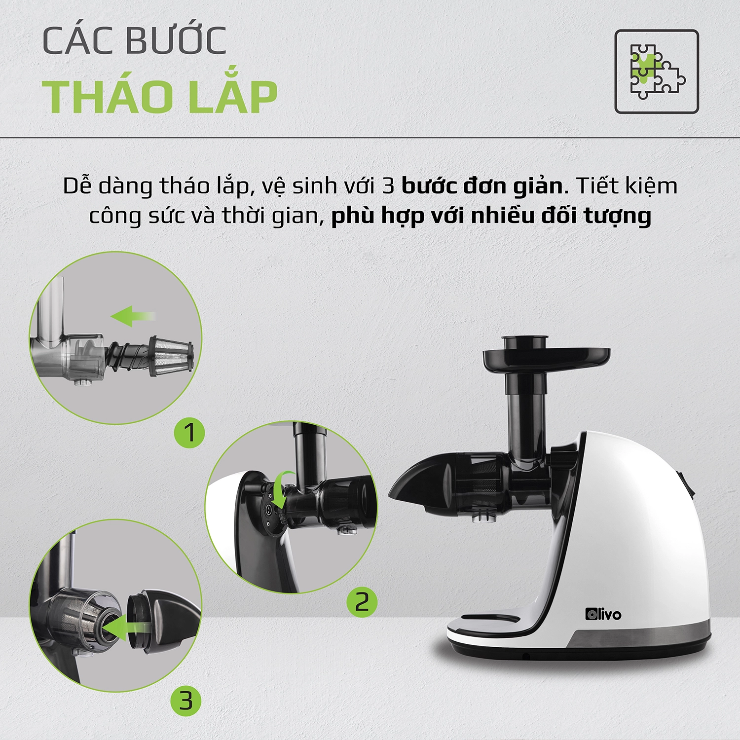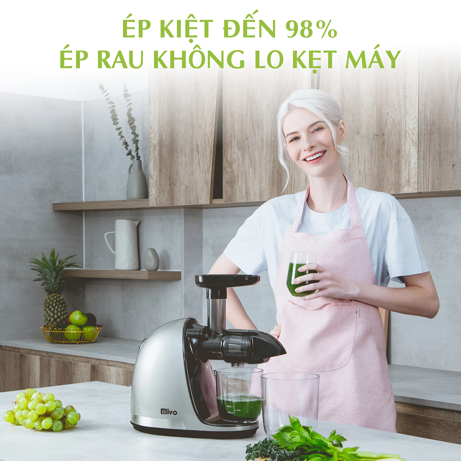 Trải nghiệm ngay Máy ép chậm OLIVO SJ22 Công nghệ ép kiệt tới 98% mọi loại rau củ!