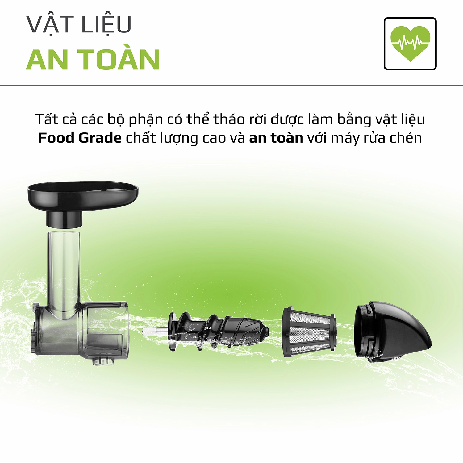 - Tất cả các bộ phận có thể tháo rời được làm bằng vật liệu Food Grade chất lượng cao và an toàn với máy rửa chén giúp bạn dễ dàng tháo lắp và vệ sinh sản phẩm.