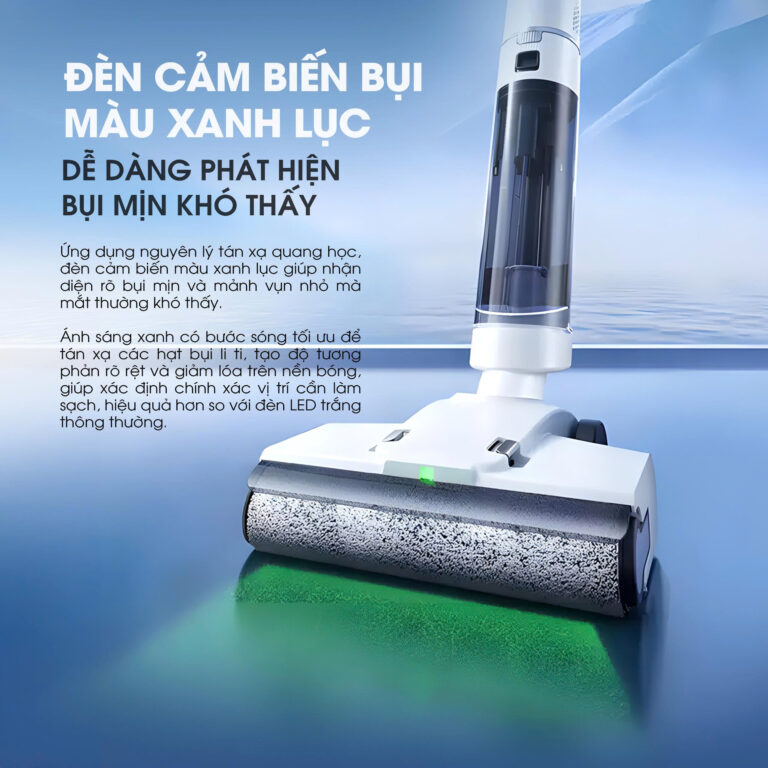 Nhờ đó, người dùng có thể xác định chính xác vị trí cần làm sạch, đảm bảo không bỏ sót bụi mịn, mang lại hiệu quả vượt trội hơn hẳn so với các loại đèn LED trắng thông thường.