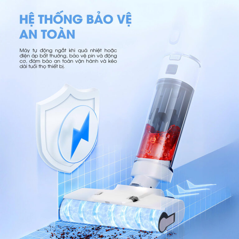 Nhờ đó, người dùng có thể yên tâm lau hút liên tục mà không lo quá tải hay chập điện, đồng thời kéo dài tuổi thọ thiết bị và đảm bảo an toàn tuyệt đối cho cả gia đình.