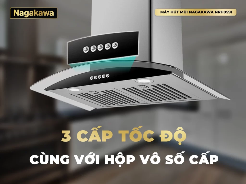 Máy hút mùi Nagakawa NRH9591 được trang bị 3 cấp tốc độ cùng hộp số vô cấp, cho phép bạn điều chỉnh linh hoạt để phù hợp với từng nhu cầu sử dụng. Đặc biệt, hệ thống lọc than hoạt tính cỡ lớn đảm bảo khả năng khử mùi hiệu quả, mang lại không khí trong lành cho căn bếp. Với độ ồn tối đa dưới 58 dB(A), máy vận hành êm ái, giúp kiểm soát tiếng ồn tối ưu, mạng lại không gian nấu nướng yên tĩnh và thư thái, không còn lo lắng về sự khó chịu do tiếng động của máy.