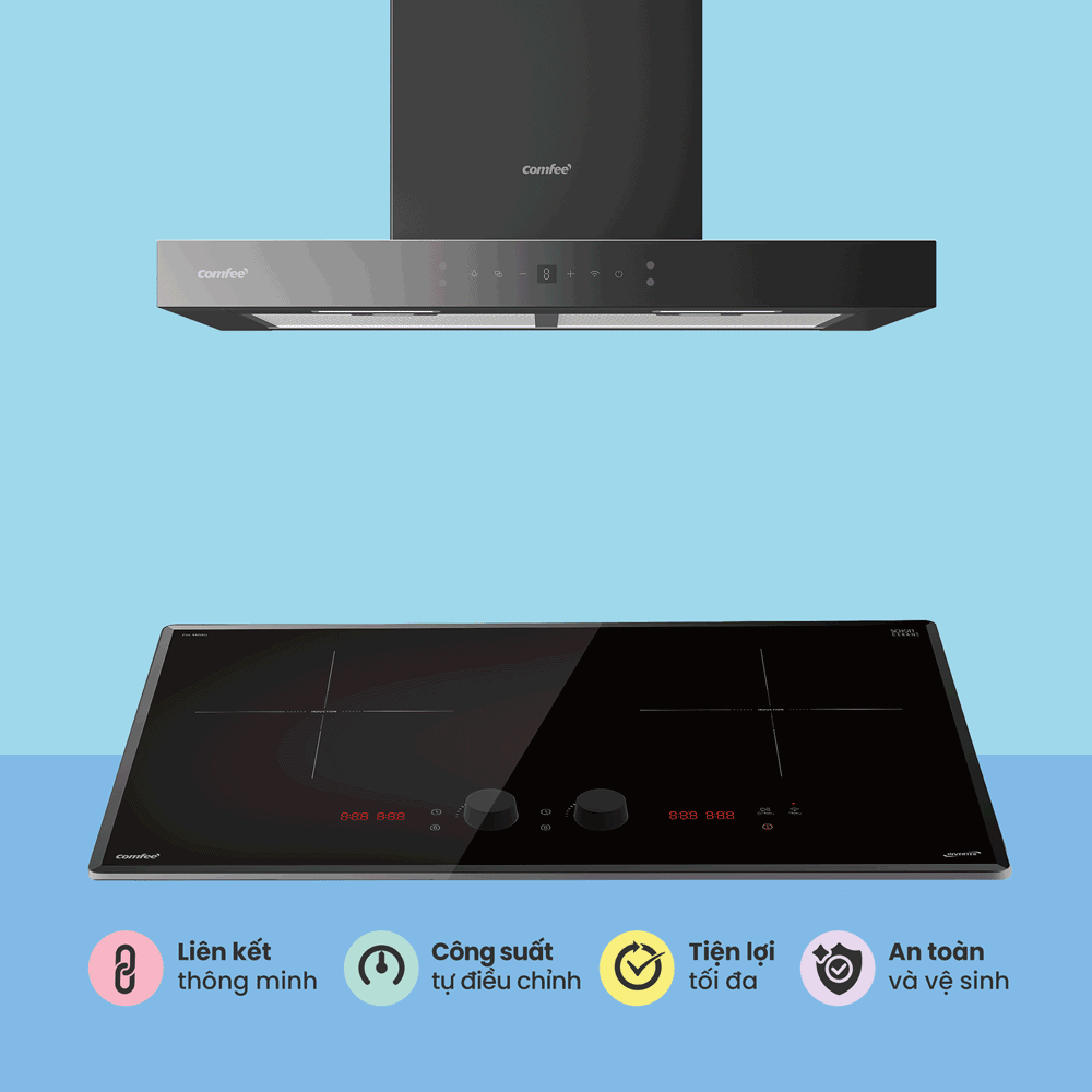 | AI Connect: Tự liên kết bếp & hút mùi* |