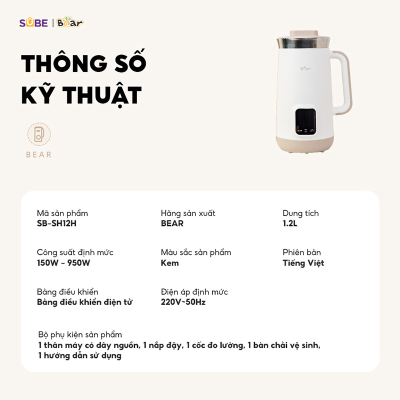1.Thông số kĩ thuật của máy Bear SB-SH12H
