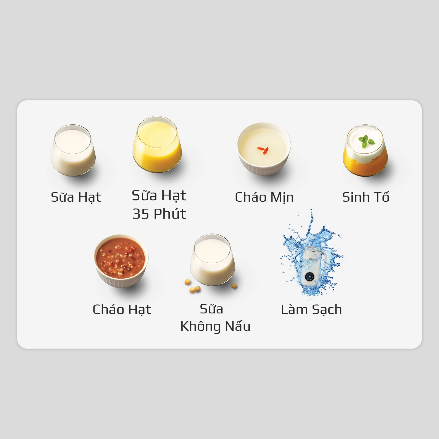 • Sữa Hạt: Thích hợp để nấu các loại hạt thông thường không có tính chất đặc biệt.