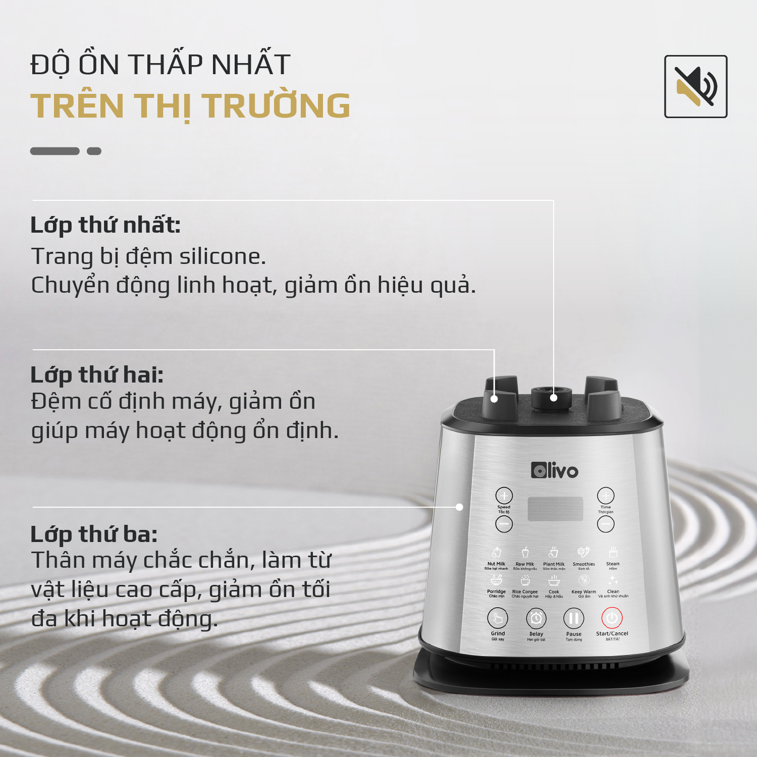 • Người dùng máy nấu sữa hạt sợ nhất là tiếng ồn của máy, hiểu được tâm lý đó OLIVO X20 PLUS đã có cải tiến vượt bậc về độ ồn. Khi hoạt động độ ồn cao nhất chỉ ở mức 68dB là mức độ có thể chấp nhận được và không làm ảnh hưởng đến mọi người xung quanh.