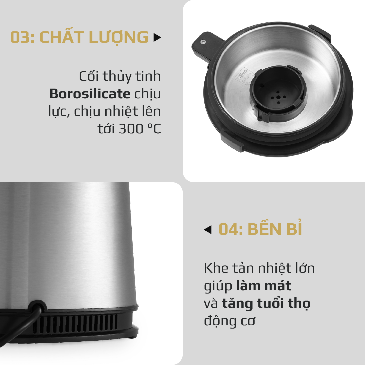 • Công suất xay 1200W, công suất nấu 800W tiêu thụ điện năng ổn định. Giúp xay nấu nhuyễn mịn mọi loại nguyên liệu.