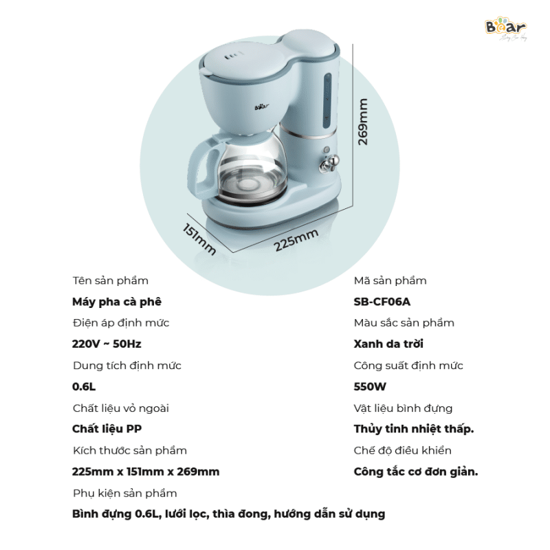 | Tên sản phẩm | Máy pha cà phê mini Bear SB-CF06A |