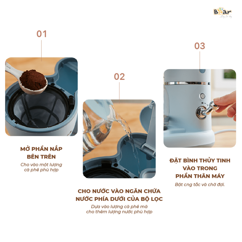 4. Hướng dẫn sử dụng Máy pha cà phê mini Bear SB-CF06A