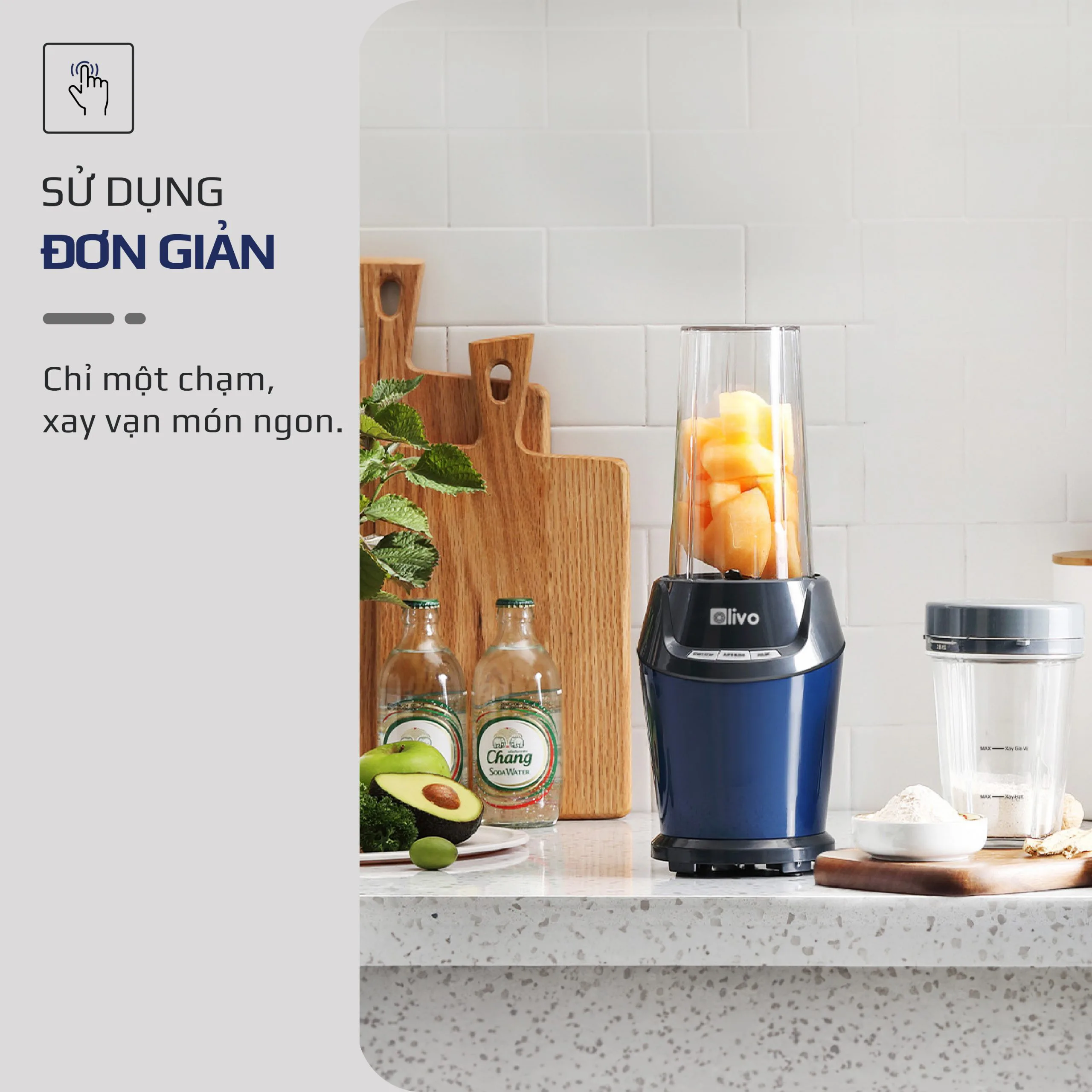- Máy xay sinh tố OLIVO MB1000 là sản phẩm tiện lợi, đa năng giúp bạn dễ dàng chế biến các món sinh tố, smoothie, đồ ăn dặm cho bé, đồ khô… Máy có công suất lớn 1000W kết hợp với lưỡi dao sắc bén có thể xay nhuyễn mịn mọi loại nguyên liệu nhanh chóng. Chất liệu cao cấp, an toàn khi sử dụng, thiết kế thông minh, dễ dàng vệ sinh.