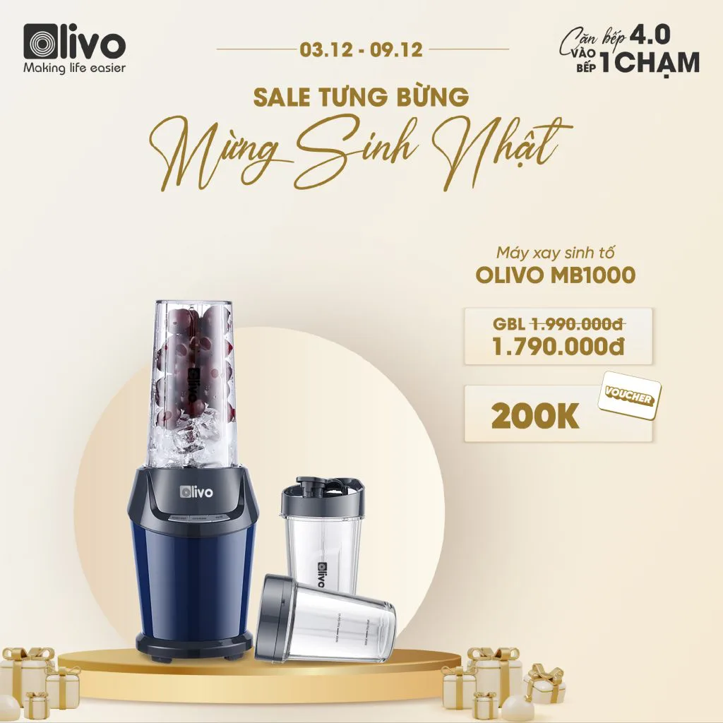 - Nếu bạn đang tìm kiếm một chiếc máy xay sinh tố đa năng, tiện lợi và giá cả hợp lý thì máy xay sinh tố đa năng 3 cốc OLIVO MB1000 là một lựa chọn tuyệt vời dành cho bạn.