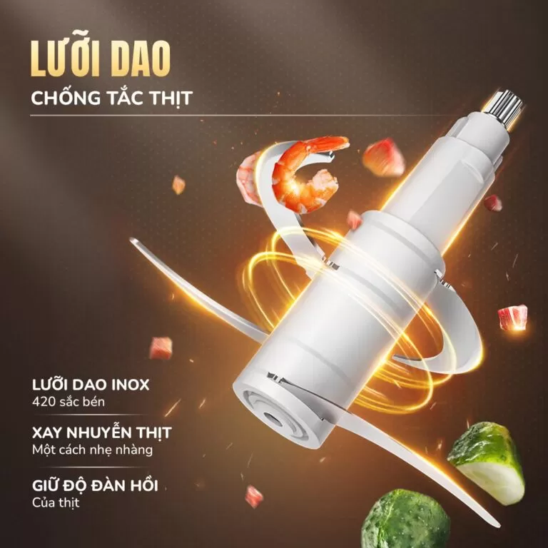 • Lưỡi dao inox sắc bén chống tắc thịt