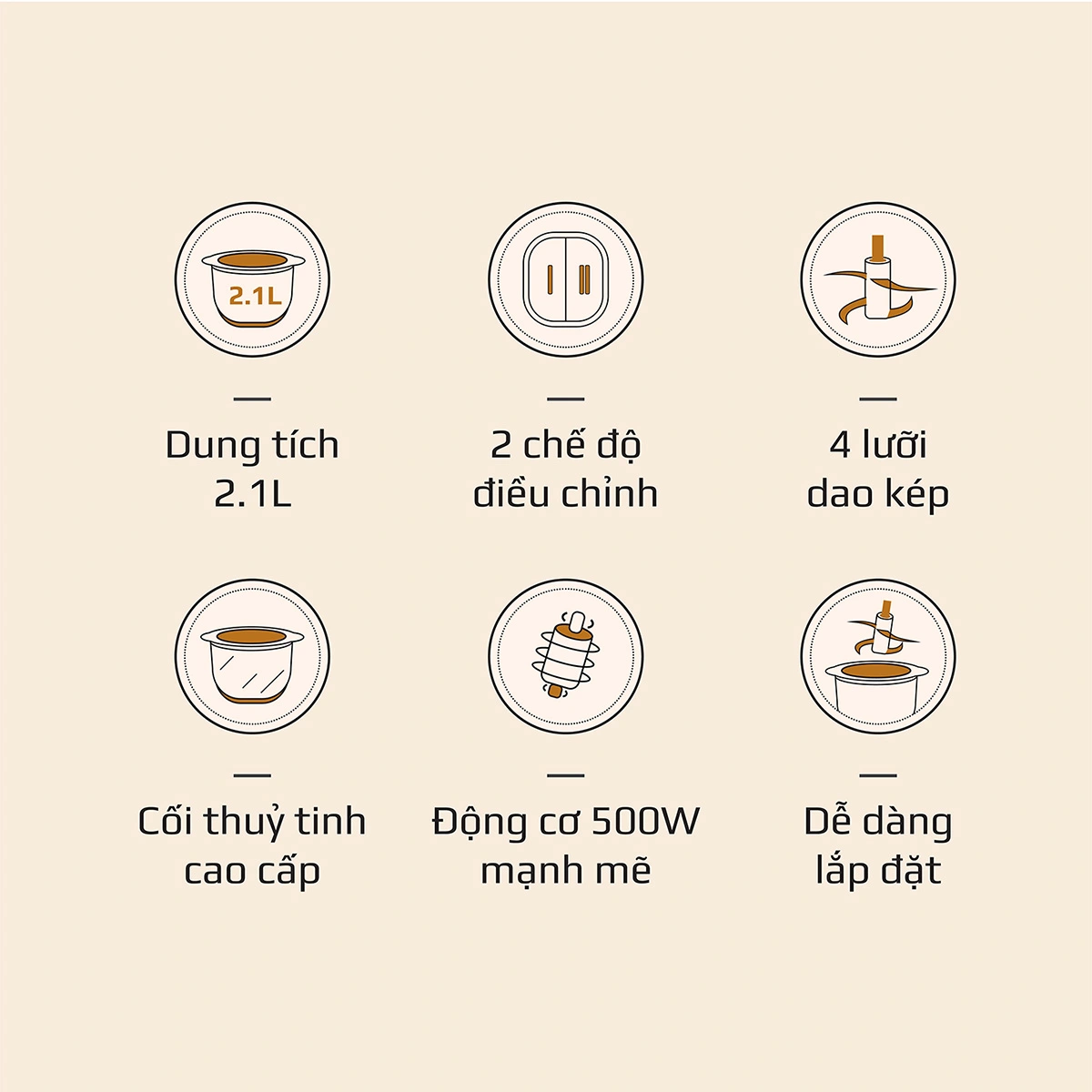 1. DUNG TÍCH CỐI XAY LỚN LÊN TỚI 2.1L