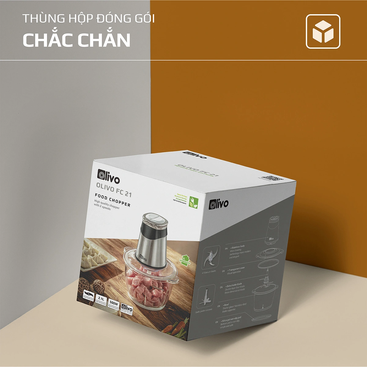 - Việc chuẩn bị bữa ăn cho gia đình là một công việc quan trọng và luôn được các bà nội trợ Việt quan tâm. Nếu trong căn bếp được trang bị các thiết bị gia dụng nhà bếp hiện đại thì việc nấu ăn sẽ tiết kiệm thời gian và trở nên dễ dàng hơn bao giờ hết. Một trong những thiết bị nhà bếp cần phải có trong căn bếp nhà bạn đó là Máy Xay Thực Phẩm Đa Năng OLIVO FC21. Đây chắc chắn sẽ là trợ thủ đắc lực của mọi bà nội trợ bởi tính năng ưu việt và đa năng của mình.