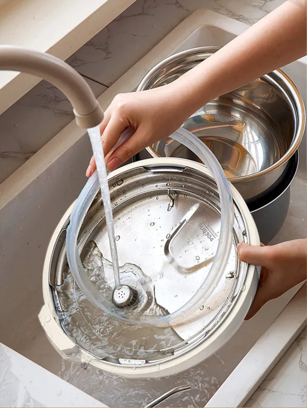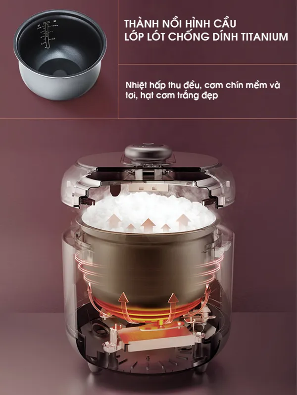 -Có 2 lòng nồi đi kèm: lòng nồi chống dính titanium và lòng nồi inox cao cấp rất tiện lợi trong quá trình nấu nhiều món ăn