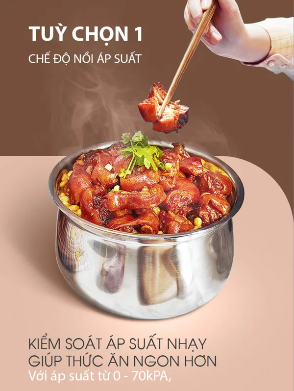 Nấu cơm chậm, Nấu cơm nhanh, Hấp cá, rau củ hoặc thực phẩm, Nướng bánh đơn giản, Chức năng giữ ấm cho thực phẩm luôn nóng hổi, thơm ngon, Nấu súp, Hầm thịt, Hầm đậu, Hầm gân, Nấu cháo, Nấu lẩu tại gia cực kỳ tiện lợi, Nướng, Chức năng hẹn giờ tiện lợi, với thời gian hẹn giờ lên đến 12 tiếng, Lên men, ủ sữa chua, Nấu xôi, Chiên, xào, kho mà không lo bị kết dính trên bề mặt nồi