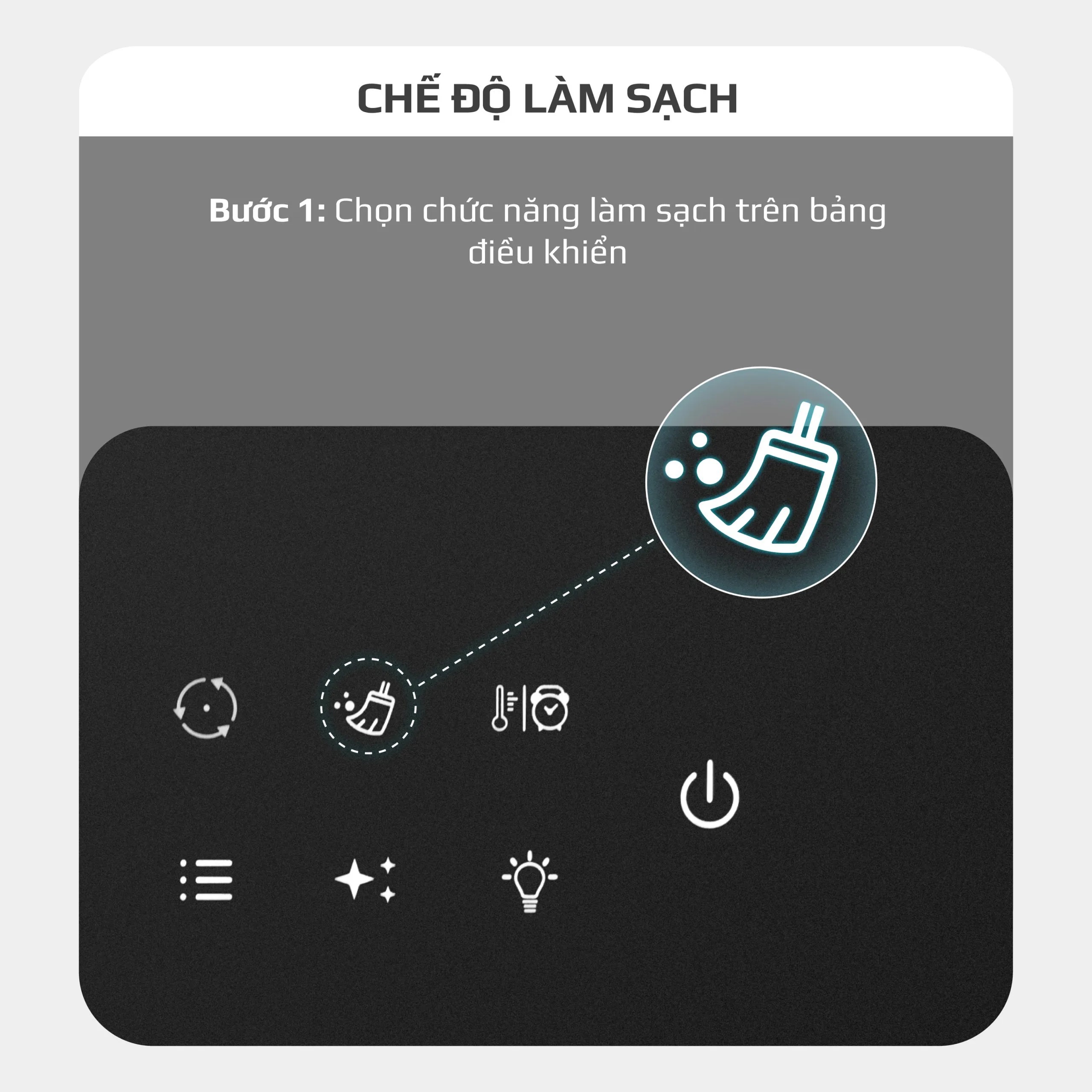 • Ngoài ra, sau khi chọn chức năng Làm Sạch có thể chọn thêm chức năng Khử Khuẩn để làm sạch sâu, loại bỏ vi khuẩn đảm bảo khoang nồi luôn sạch bong, sáng bóng.