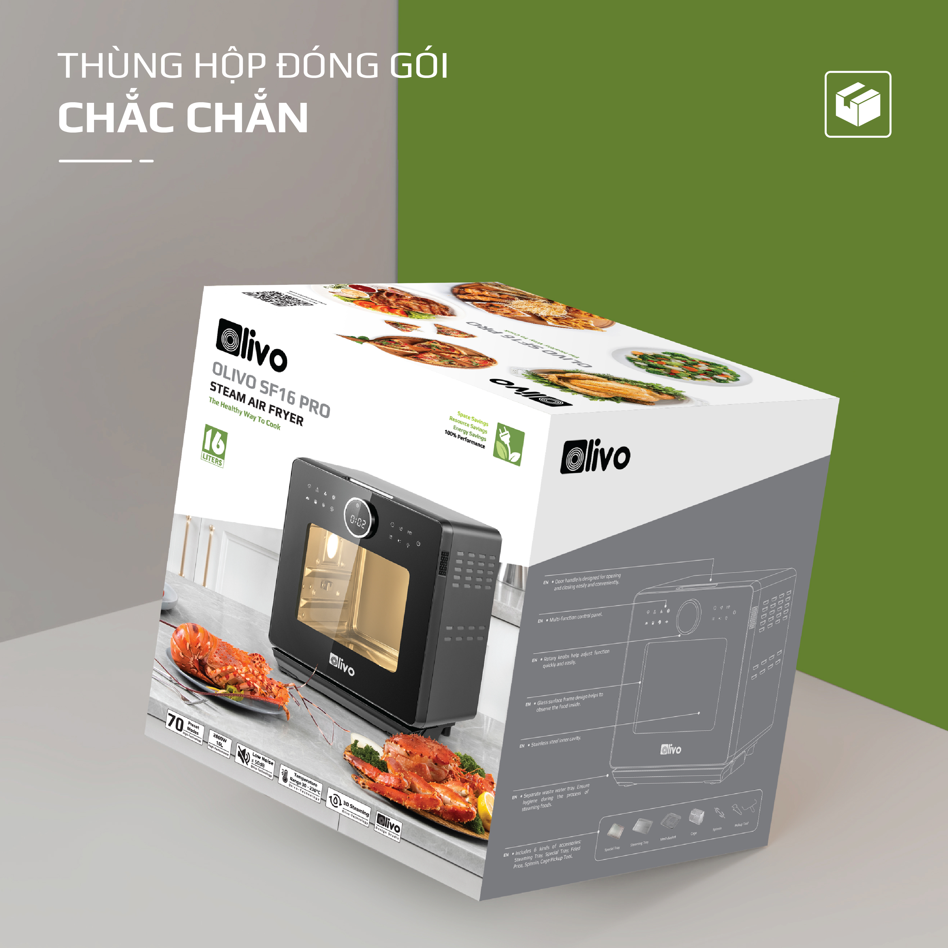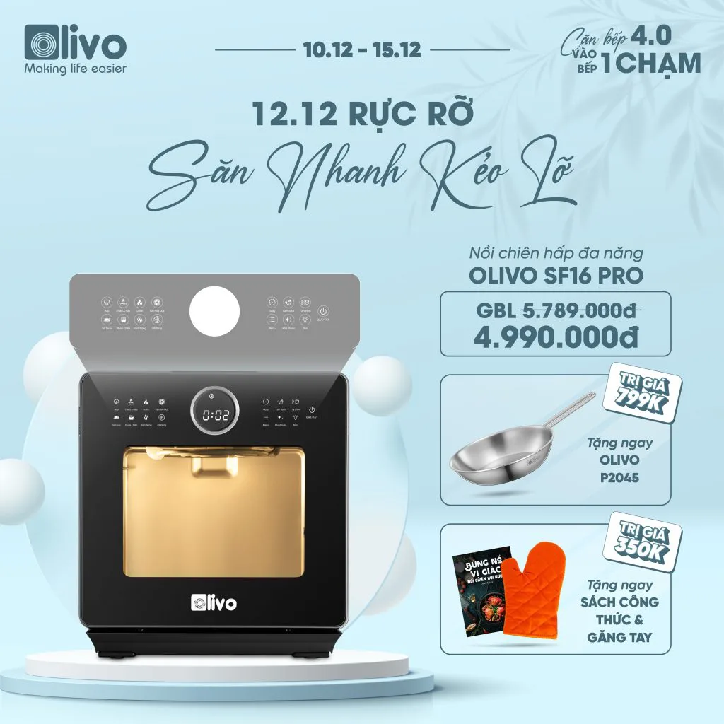 ƯU ĐIỂM VƯỢT TRỘI CỦA NỒI CHIÊN HẤP ĐA NĂNG OLIVO SF16 PRO