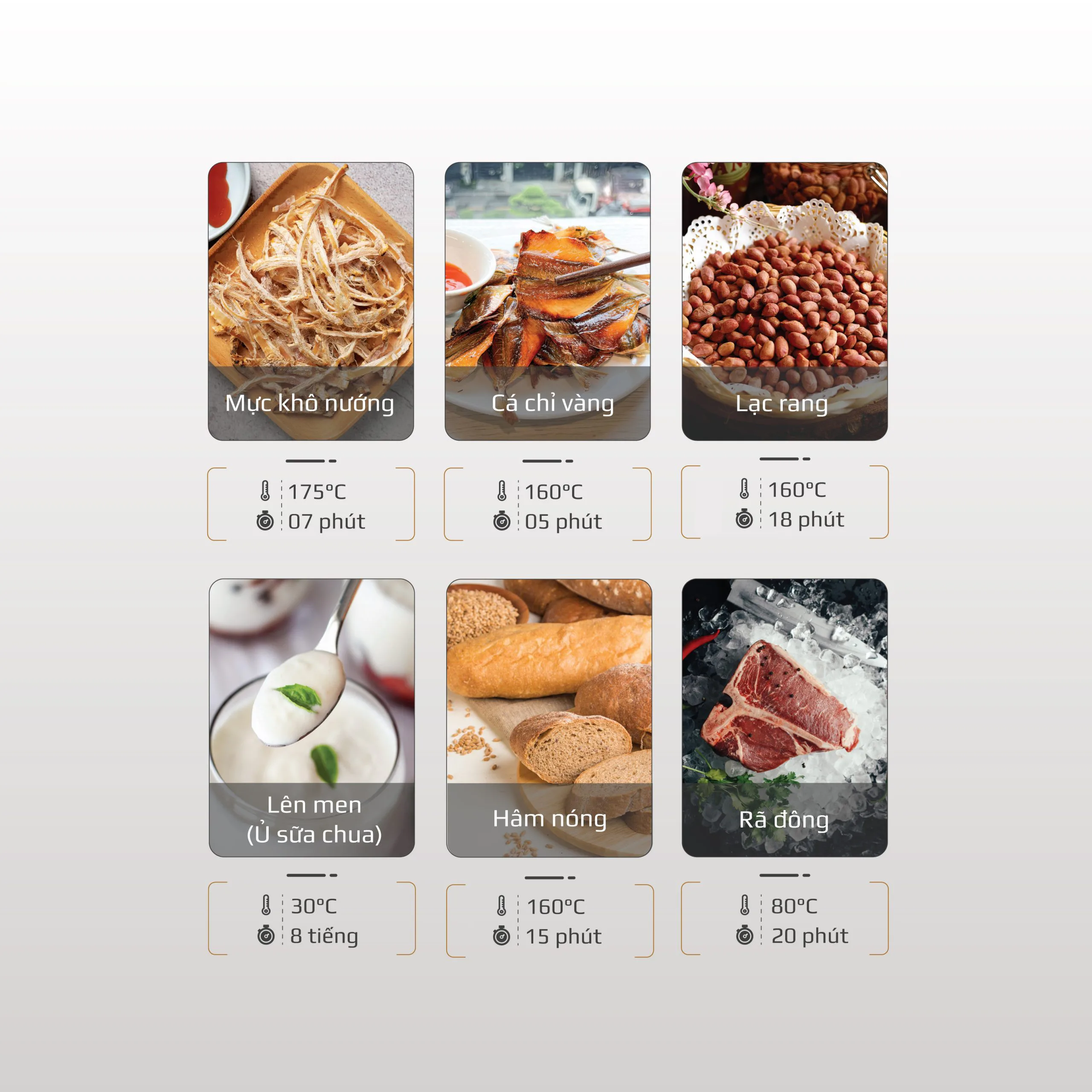 Đa dạng món ăn: Với 70 chế độ, chức năng cài đặt sẵn, bạn có thể dễ dàng chế biến nhiều món ăn khác nhau, từ các món chiên, nướng truyền thống đến các món hấp, nướng, hầm, thậm chí là làm bánh. Điều này đáp ứng nhu cầu ẩm thực đa dạng của mọi gia đình.