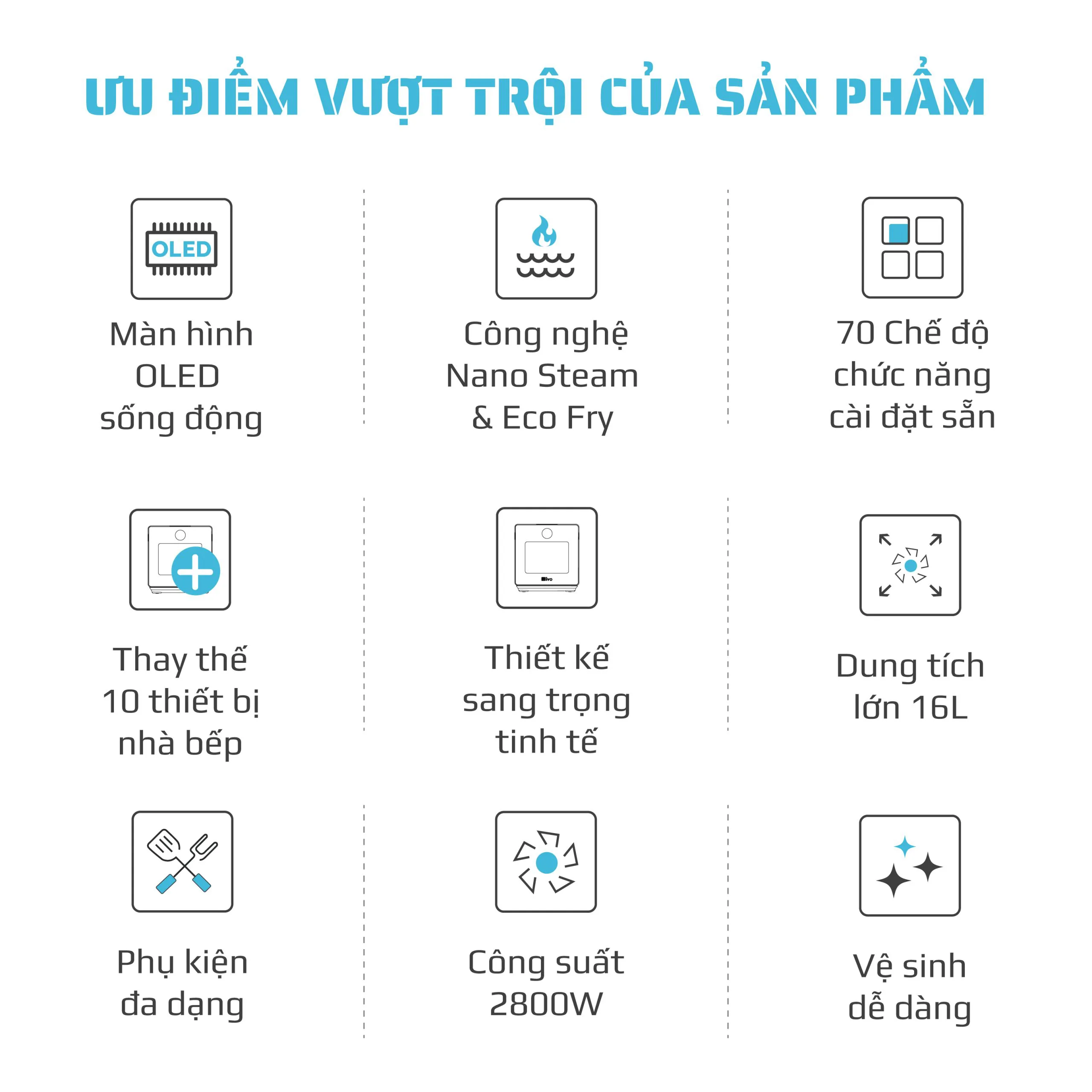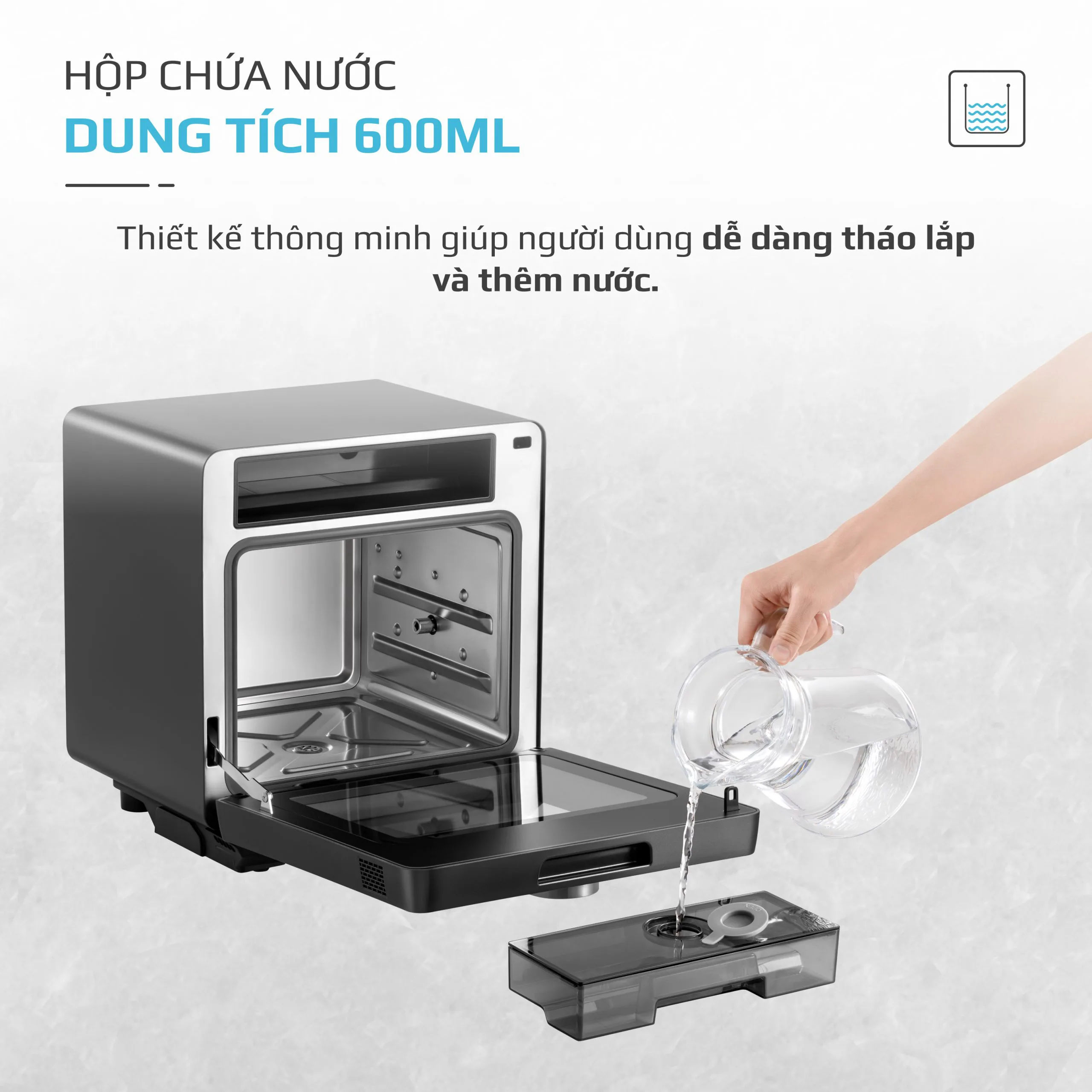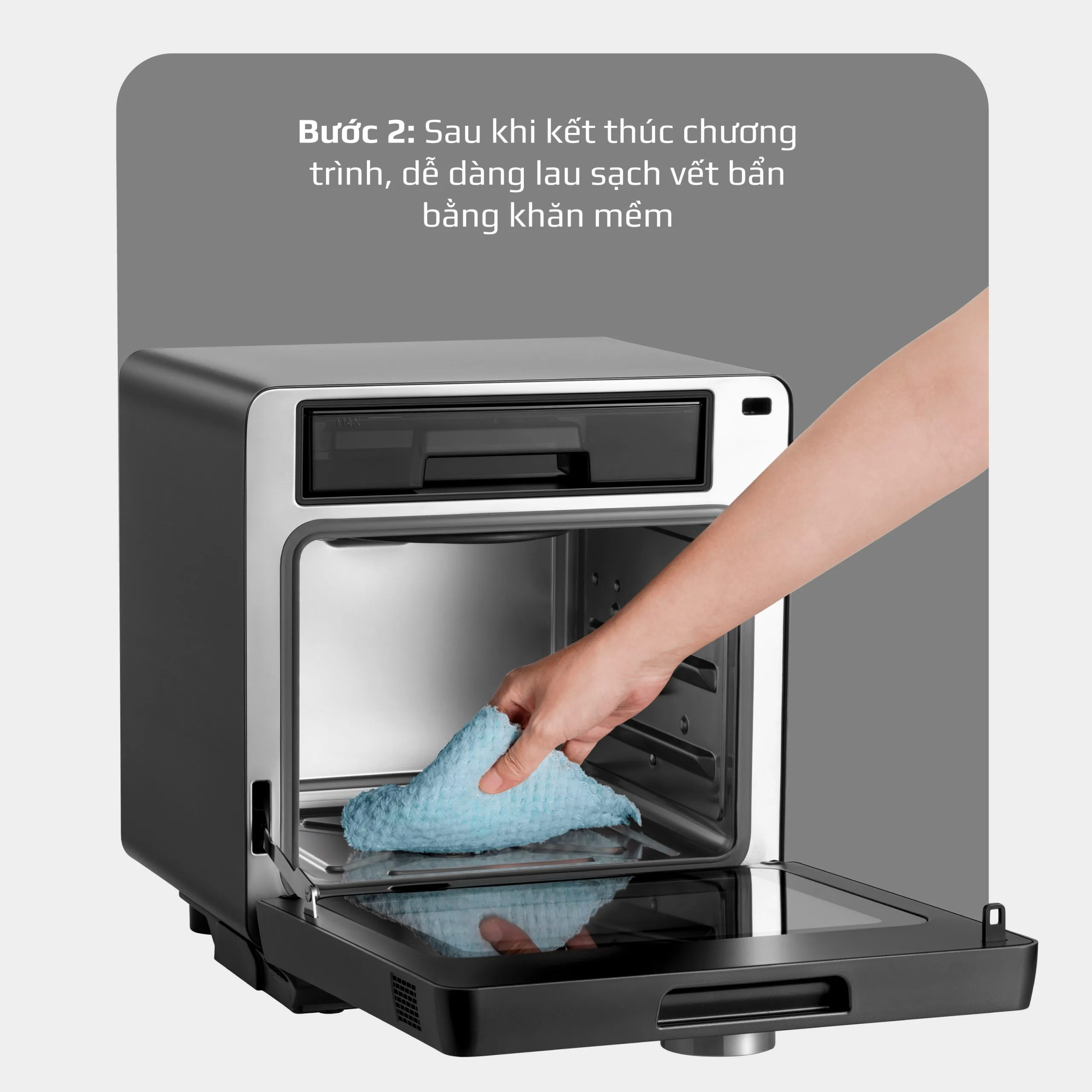 Giữ trọn hương vị và dinh dưỡng: Hơi nước nano thẩm thấu nhanh và đều, giúp thực phẩm chín đều bên trong mà không bị khô, giữ lại được tối đa vitamin, khoáng chất và các dưỡng chất khác.