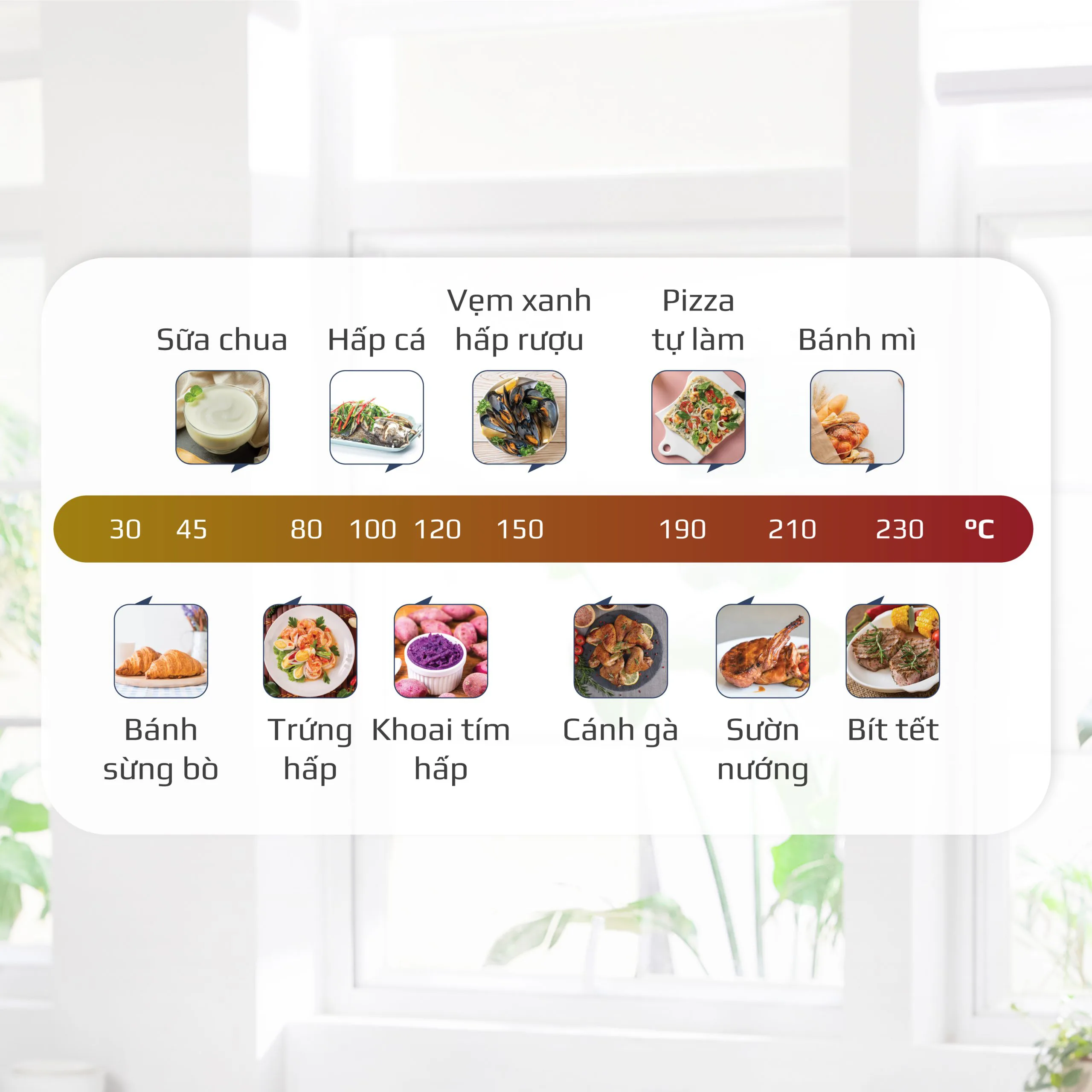 Nấu ăn chính xác: Các chế độ nấu được thiết kế bởi các chuyên gia ẩm thực, đảm bảo món ăn được nấu chín đều, giữ được hương vị và dinh dưỡng.