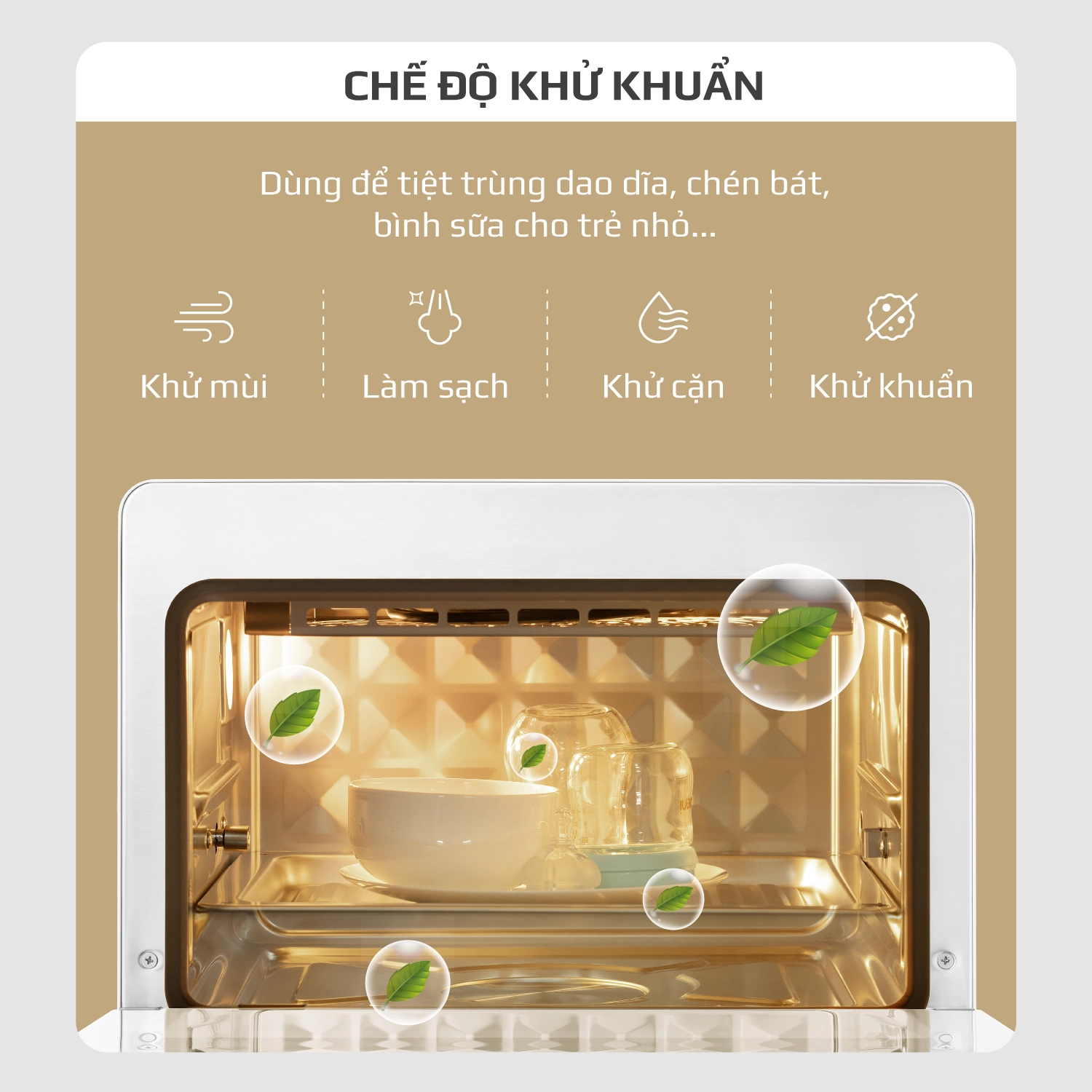 Ngoài ra, sau khi chọn chức năng Làm Sạch có thể chọn thêm chức năng Khử Khuẩn để làm sạch sâu, loại bỏ vi khuẩn đảm bảo khoang nồi luôn sạch bong, sáng bóng.