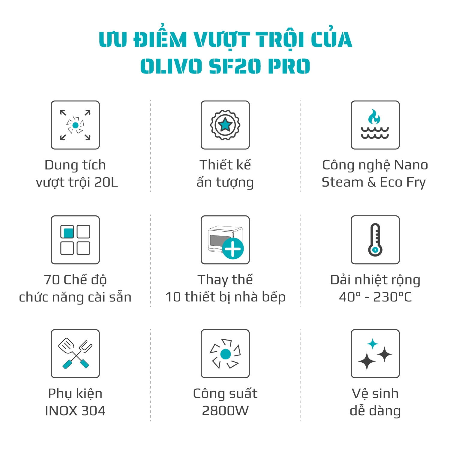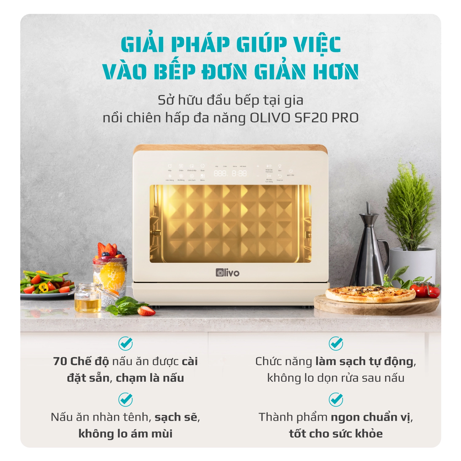 ƯU ĐIỂM VƯỢT TRỘI CỦA NỒI CHIÊN HẤP ĐA NĂNG OLIVO SF20 PRO