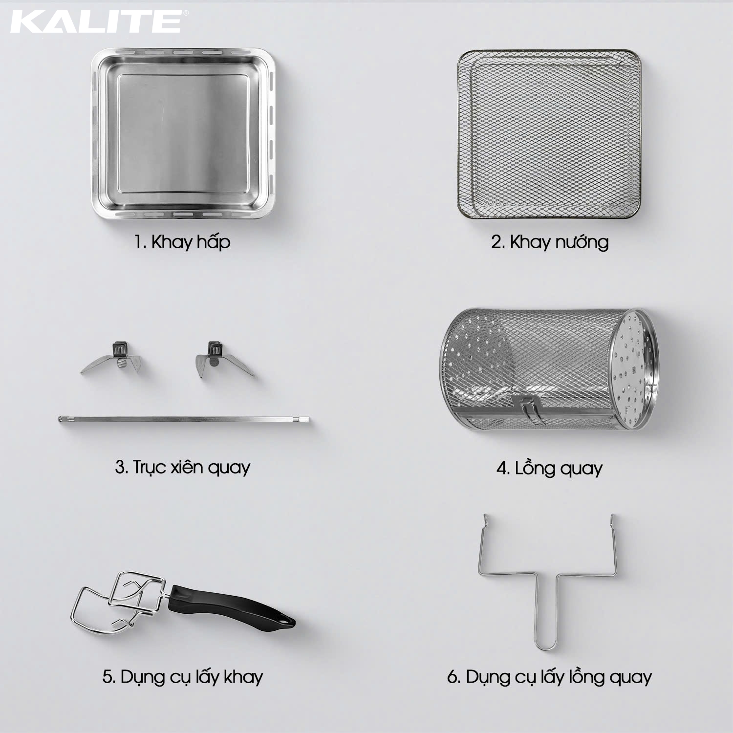 Khi sở hữu Kalite Steam Fusion Pro, bạn sẽ nhận được trọn bộ phụ kiện hỗ trợ nấu nướng đa dạng và tiện ích, giúp chế biến nhiều món ăn ngon, an toàn và nhanh chóng.