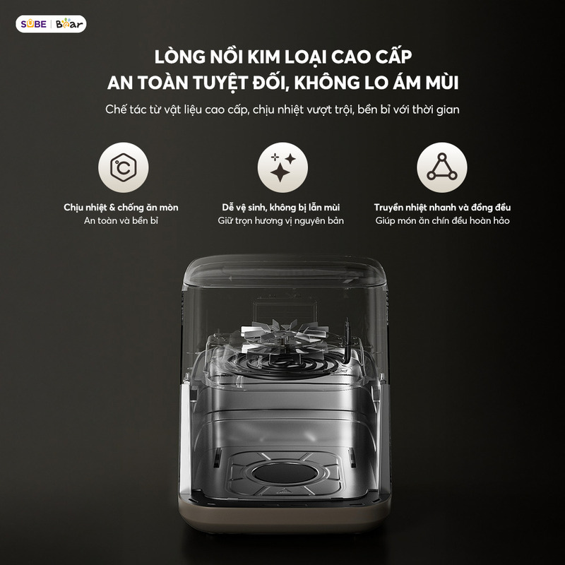 Ngoài ra nồi còn có công suất lên tới 2100W giúp làm nóng nhanh, đảm bảo thực phẩm được làm chín từ trong ra ngoài một cách đồng đều, tiết kiệm thời gian và điện năng.