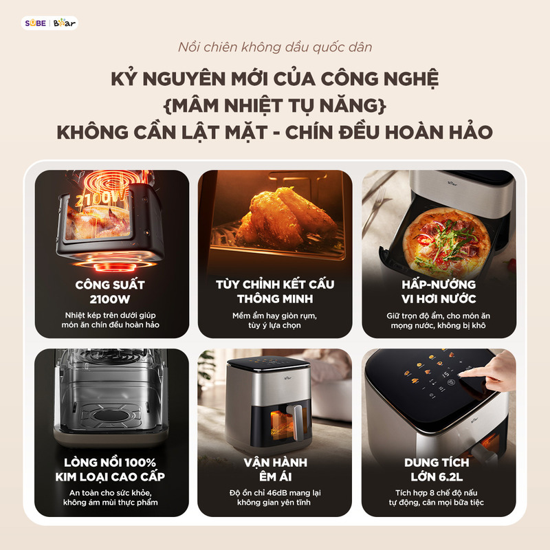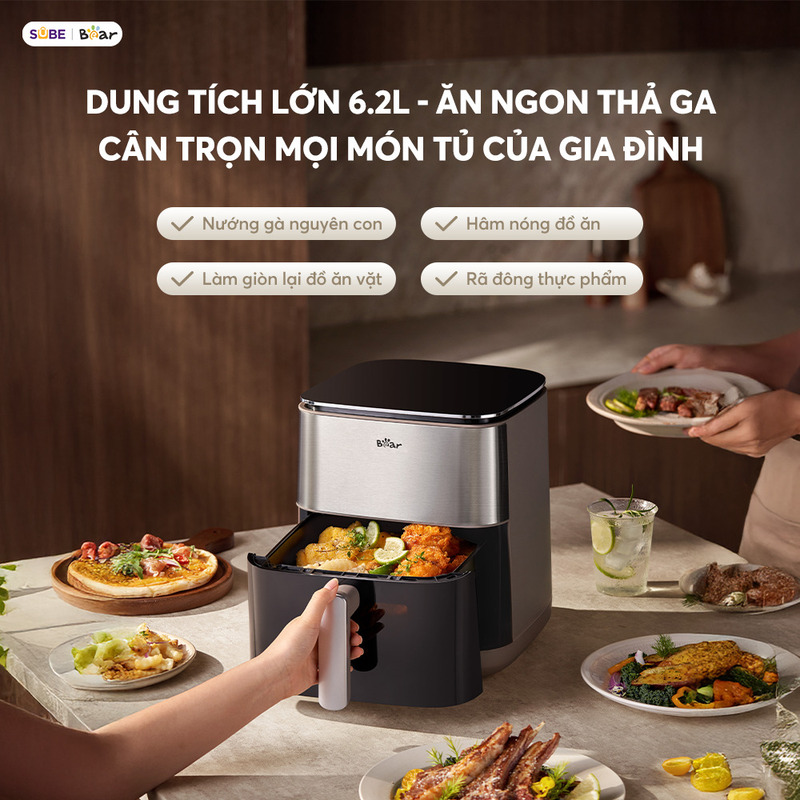 Bạn đang tìm 1 chiếc nồi chiên không dầu dung tích lớn dùng cho đại gia đình, Nồi chiên không dầu Bear 6L AF-5H20J75 sẽ là lựa chọn hoàn hảo dành cho bạn đấy. Với dung tích lớn, công nghệ tiên tiến và khả năng giảm lượng dầu mỡ, sản phẩm này giúp bạn chuẩn bị những món ăn ngon và bổ dưỡng một cách dễ dàng. Hãy cùng tìm hiểu những ưu điểm nổi bật của chiếc nồi chiên không dầu này qua bài viết dưới đây nhé!