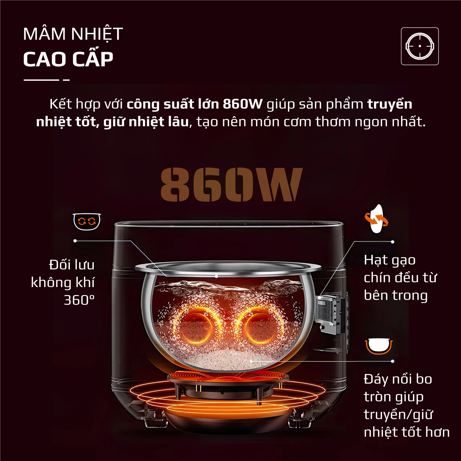 7. CÔNG SUẤT LỚN 860W, MÂM NHIỆT CAO CẤP
