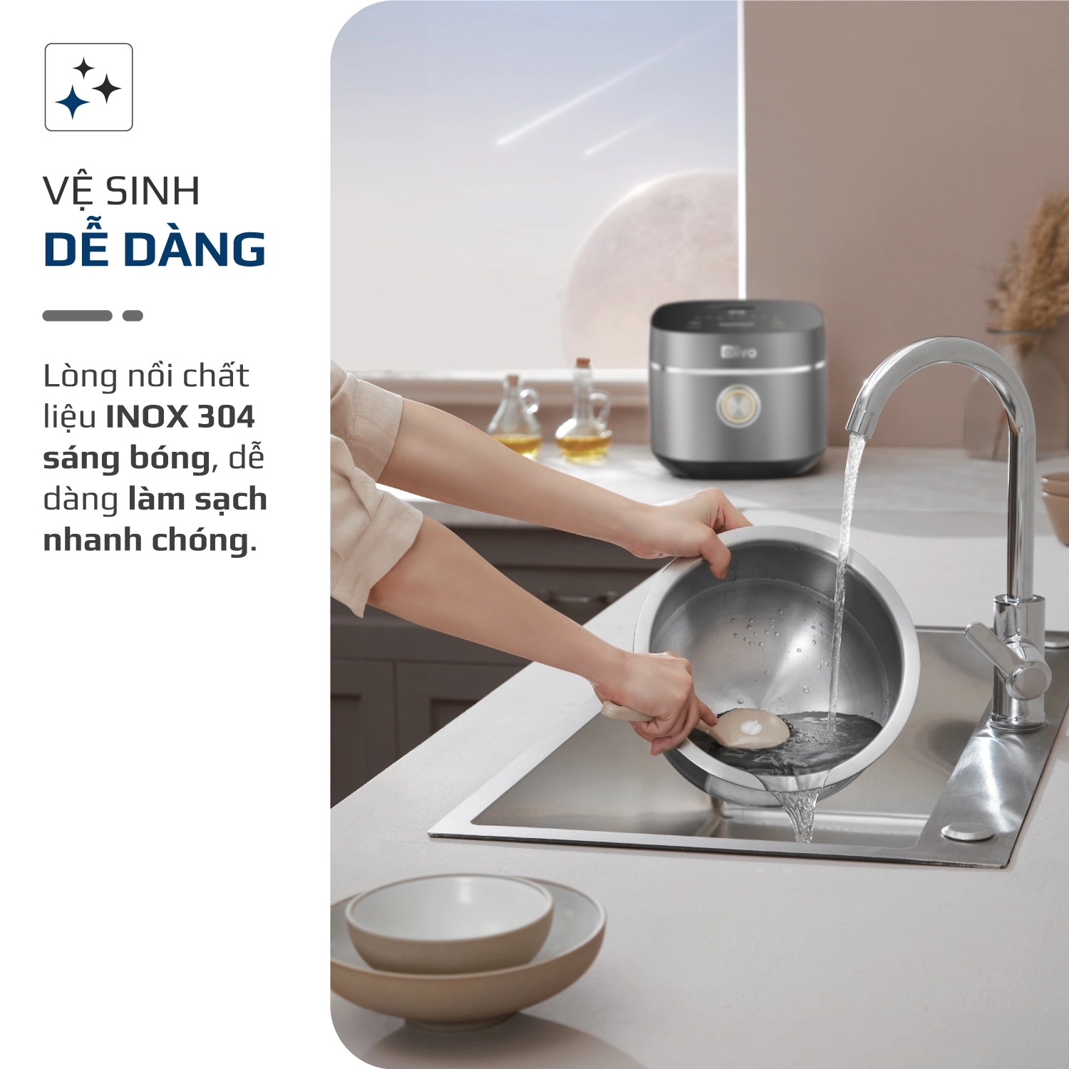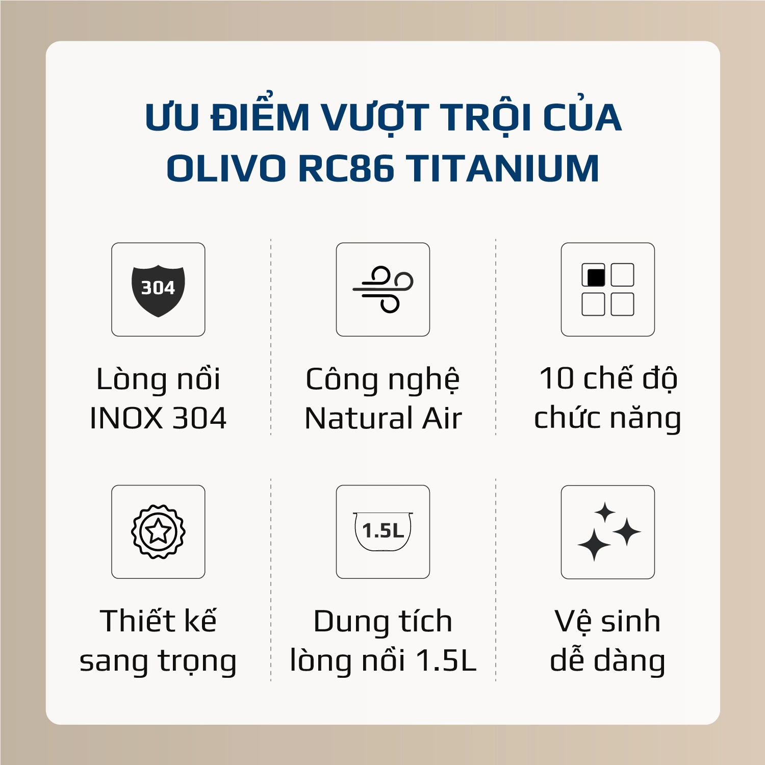 - Hiểu được nhu cầu của người nội trợ hiện đại trong việc nấu nướng, OLIVO cho ra mắt nồi cơm điện lòng nồi INOX 304 cao cấp OLIVO RC86 – sự kết hợp hoàn hảo giữa công nghệ hiện đại, thiết kế sang trọng và chất lượng vượt trội.