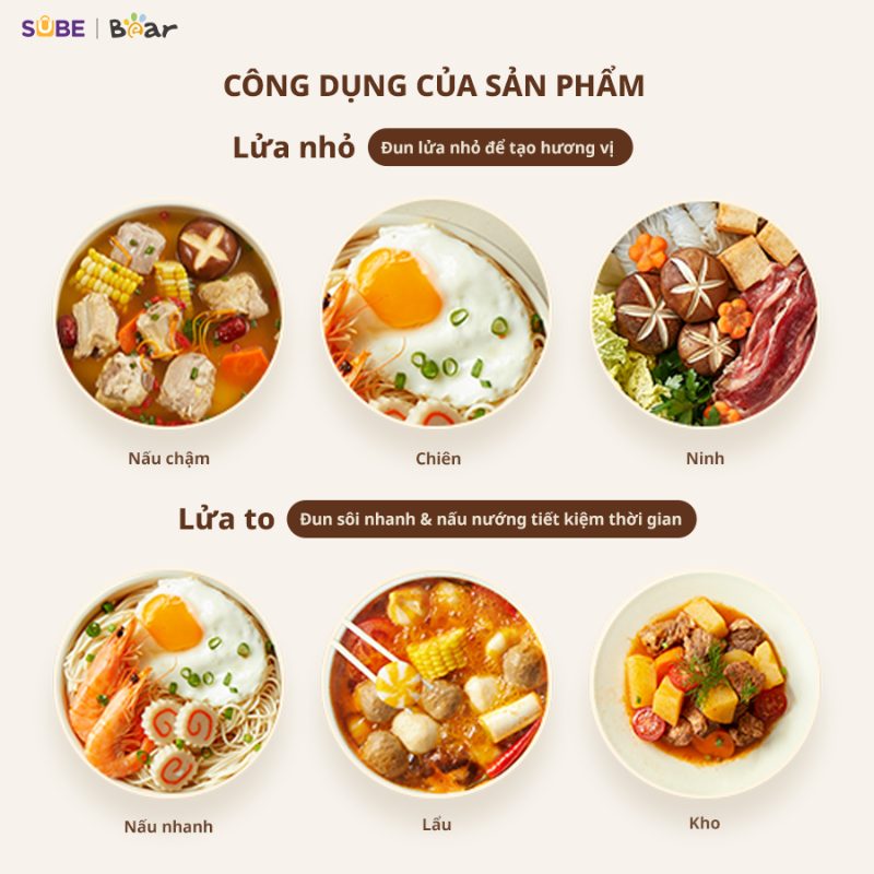 | Chức năng | Nấu lẩu | Nấu mì | Ninh hầm | Chiên xào | Hấp |