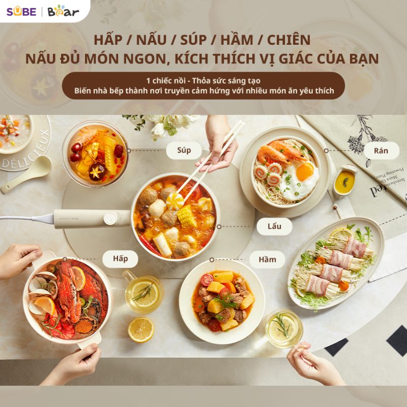 Với tên gọi “đa năng”, Bear MC-4H16F hứa hẹn sẽ trở thành người bạn đồng hành lý tưởng trong mọi hoạt động nấu nướng của các chị em phụ nữ. Dù là nấu những bữa lẩu ấm áp, chế biến món ninh thơm ngon hay thực hiện các món hấp nhẹ nhàng, nồi điện đa năng này sẽ mang đến cho bạn trải nghiệm nấu ăn tiện dụng và nhanh chóng.