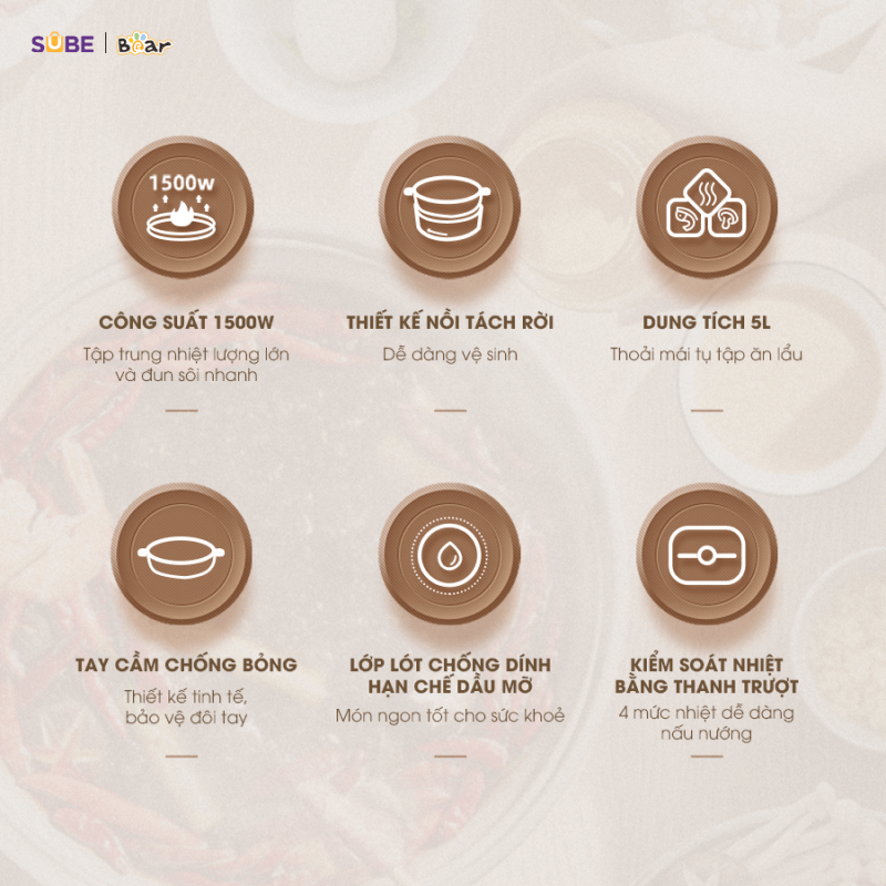 Với những tính năng trên, nồi nấu lẩu Bear sẽ giúp bạn tự tay thực hiện rất nhiều món ngon.