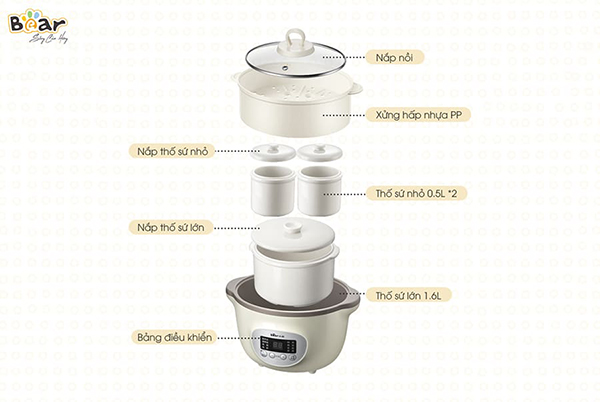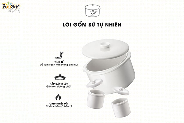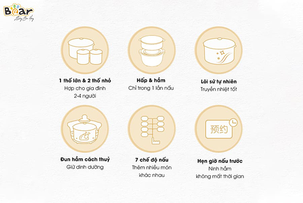 • Đa năng: Hấp, Hầm canh, Nấu cháo, Chưng yến, Súp chè, Giữ ấm