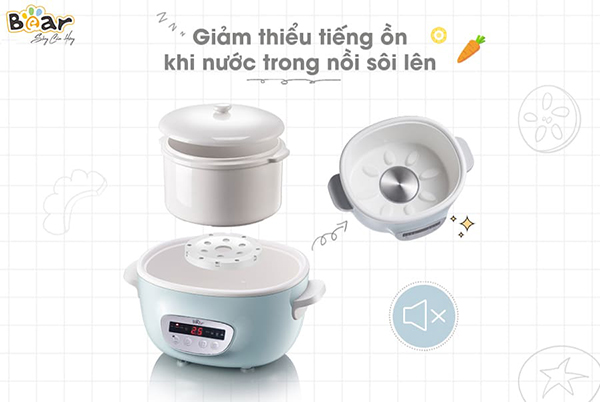 Khác với các kiểu nổi khác, nồi nấu chậm Bear 2.5L SUBE003 có cơ chế là nấu chậm, hầm thức ăn theo phương thức cách thủy. Chính vì thế mà mọi chất dinh dưỡng sẽ được giữ lại nhiều nhất có thể. Hơn thế, một số loại thực phẩm như hải sản, tôm, cá, các loại củ quả khi hấp theo phương pháp cách thủy sẽ giữ được hương vị thơm ngon tự nhiên, không bị nát.