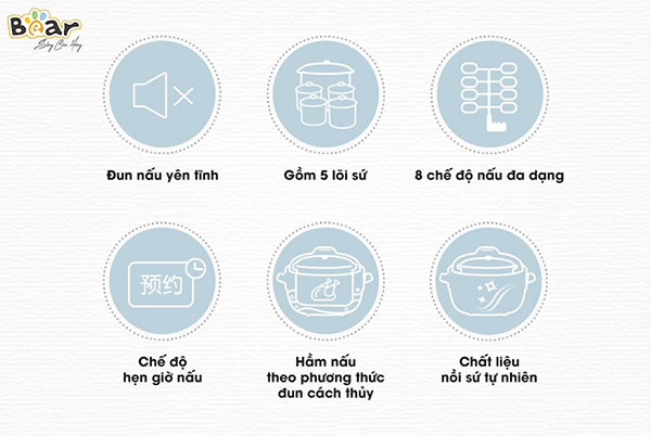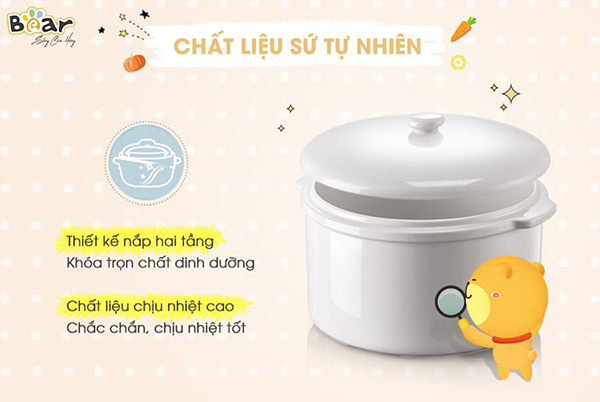 Không chỉ có thiết kế nhỏ gọn mà nồi nấu cháo chậm Bear SUBE003 còn sở hữu những ưu điểm nổi bật sau đây: